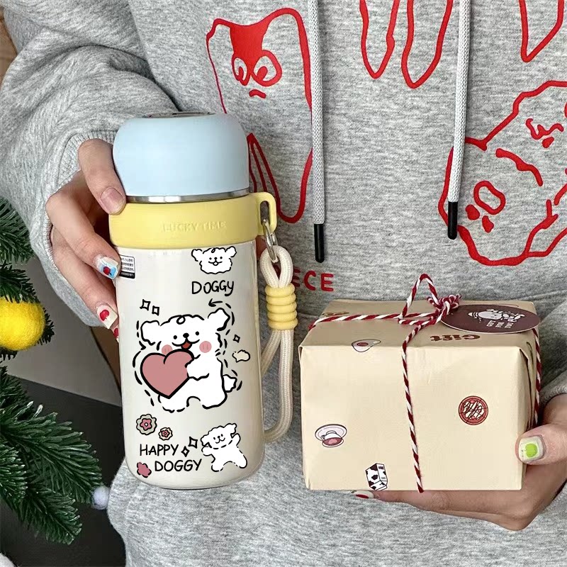📚 线条小狗水杯小巧便携女生高颜值保温杯316不锈钢小容量简约杯子