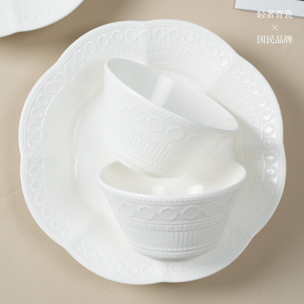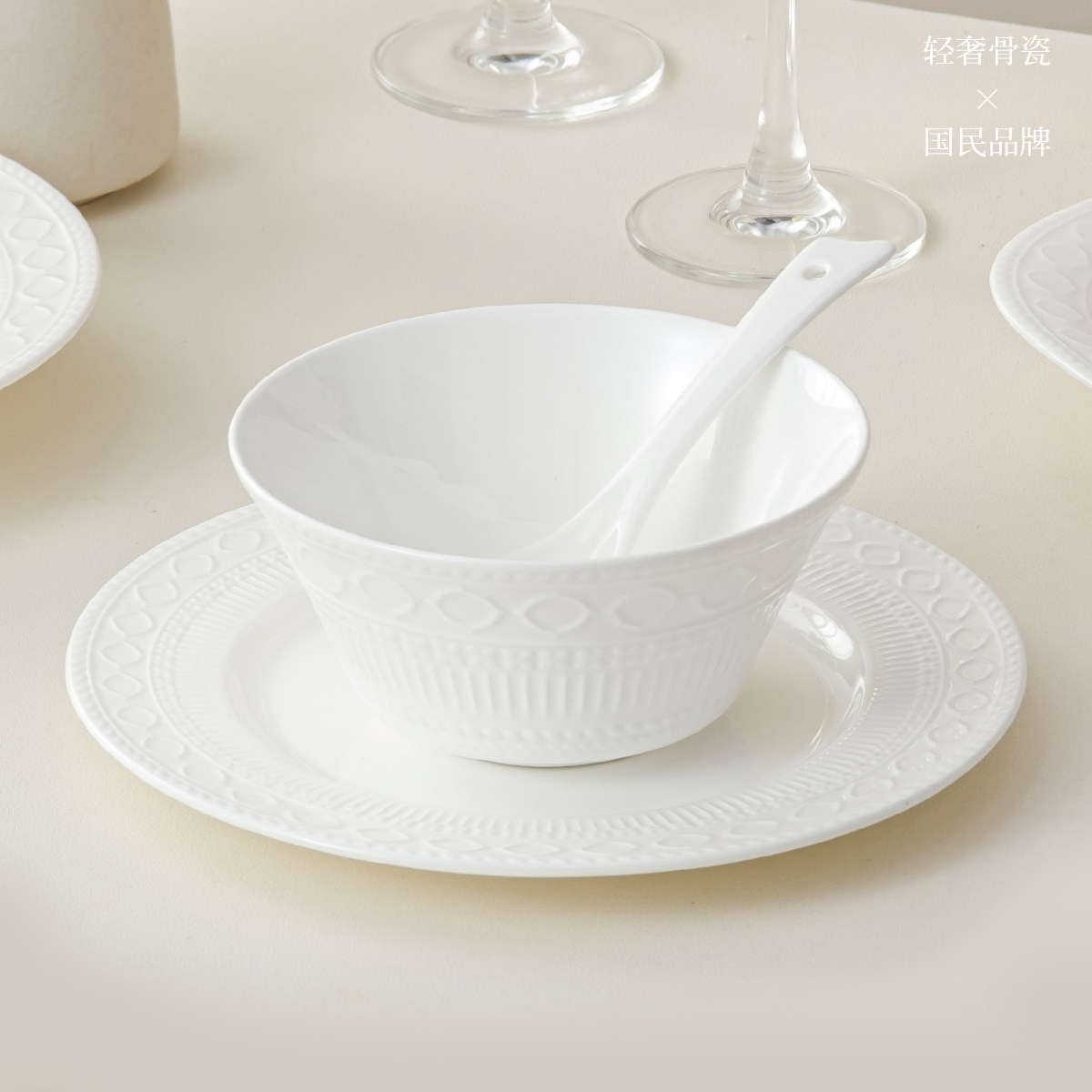 📚 雅诚德骨瓷餐具套装家用碗盘子个人专用高颜值釉下彩饭碗汤碗送礼
