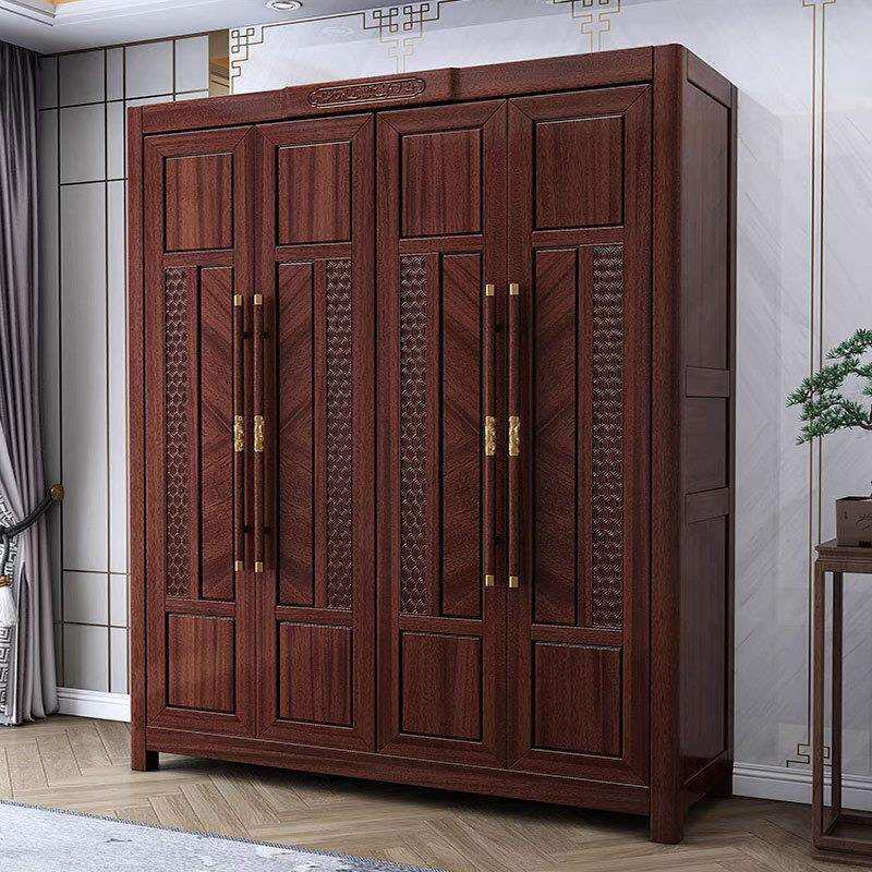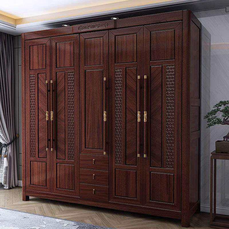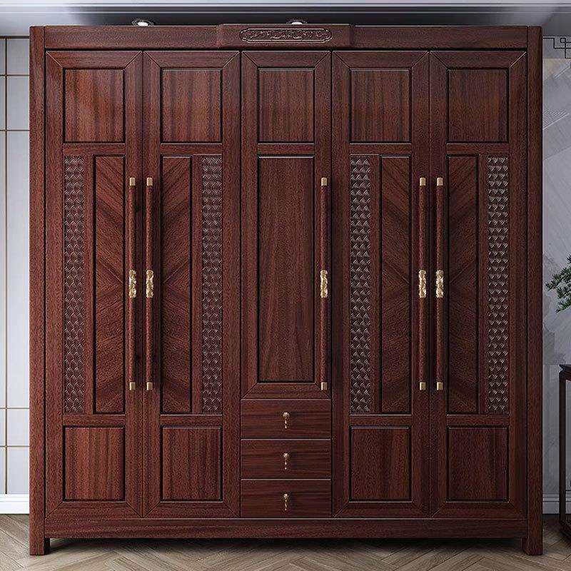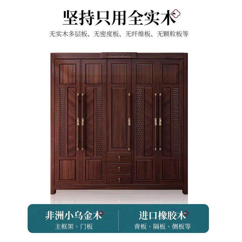 📚 乌金木衣柜全实木组合柜新中式家用卧室衣橱简约五门对开门储物柜
