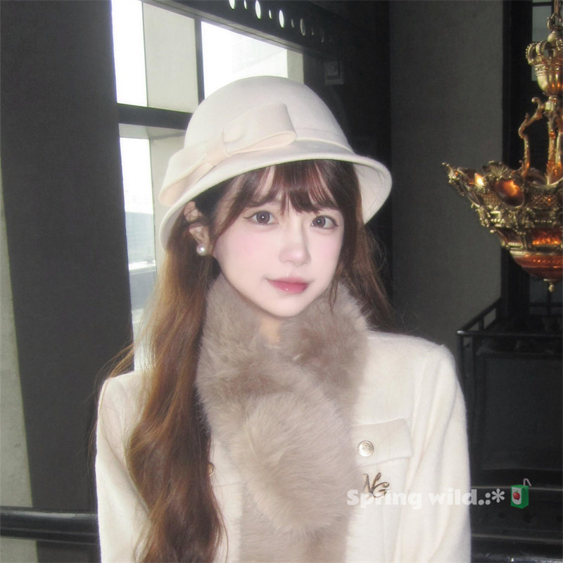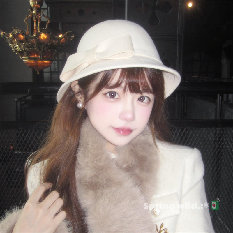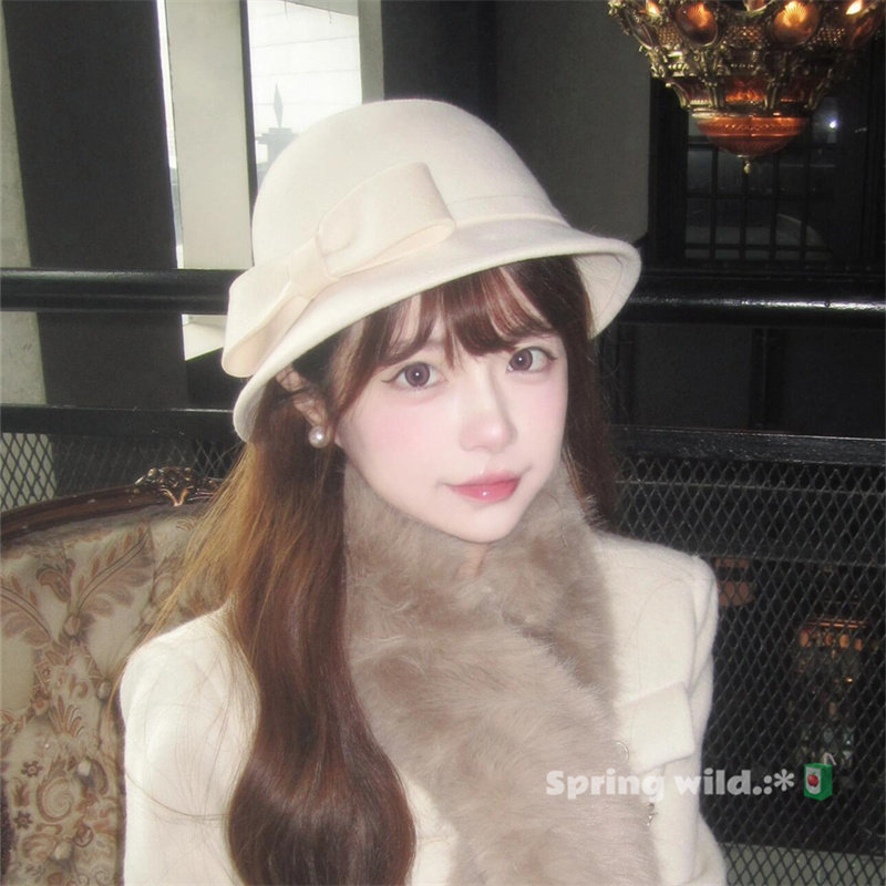 📚 法式富家千金白色大蝴蝶结礼帽赫本英伦风圆顶盆帽百搭气质渔夫帽