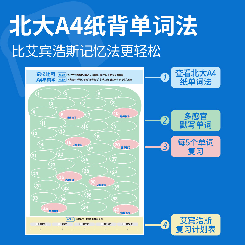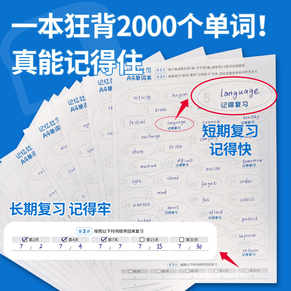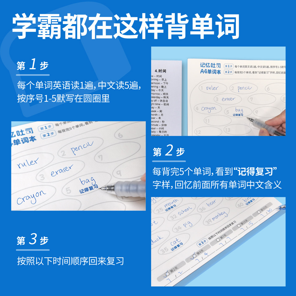 📚 记忆吐司A4英语单词本背单词纸北大记忆法小学初中高中考研学习四级六级单词词汇默写