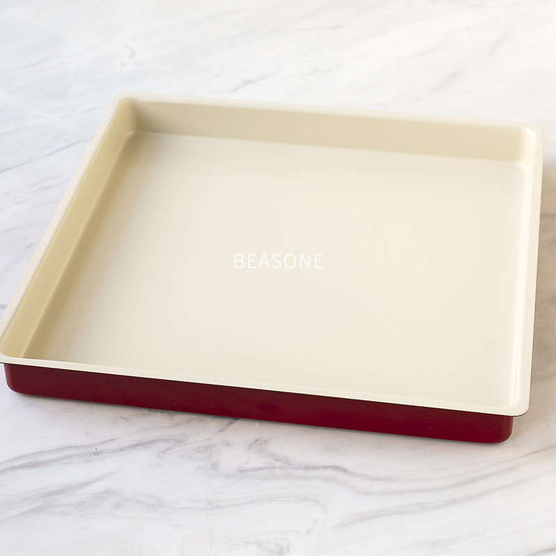 📚 包邮 28cm中国红正方形浅烤盘瑞士蛋糕卷牛轧糖雪花酥饼干方烤盘