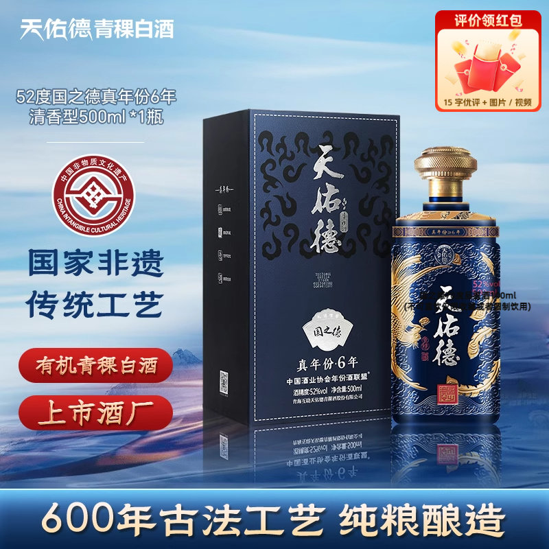 📚 天佑德青稞酒国之德真年份52度500ml清香型白酒高度有机白酒礼盒