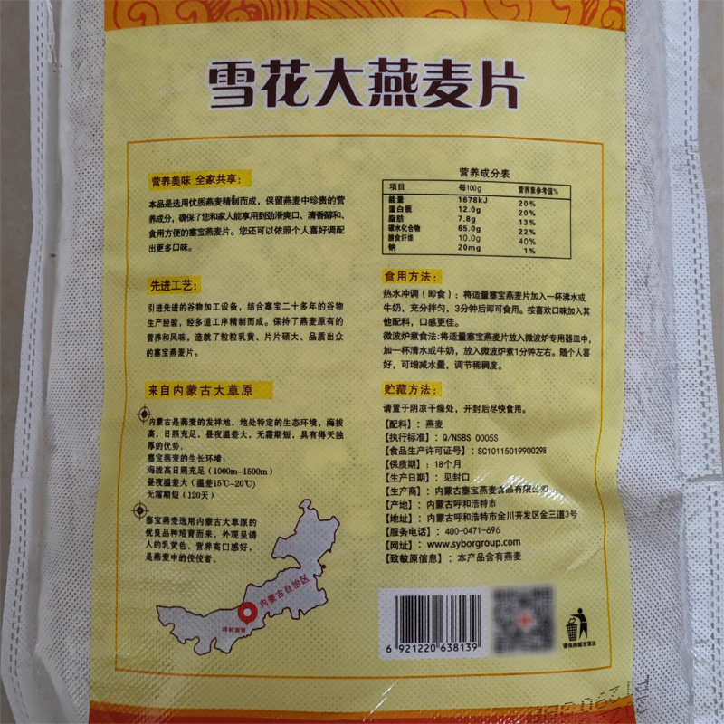 📚 塞宝 燕麦片1250g 即食祼麦片 内蒙特产 早餐免煮 粗粮赛宝 香糯