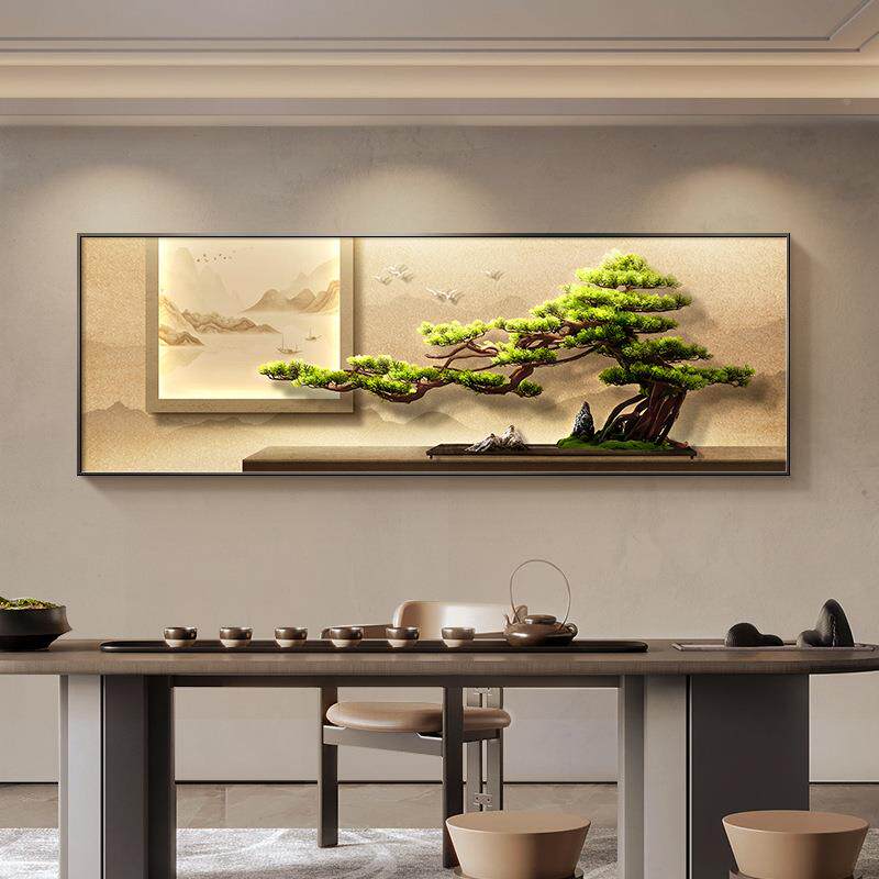 📚 桌茶台客HLT-194新厅装饰茶迎客松办公室画挂画大气中式山水沙发