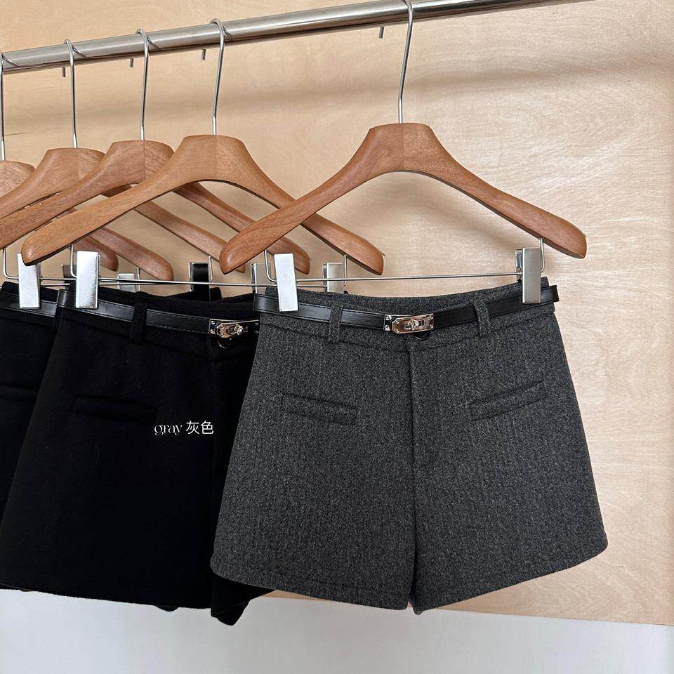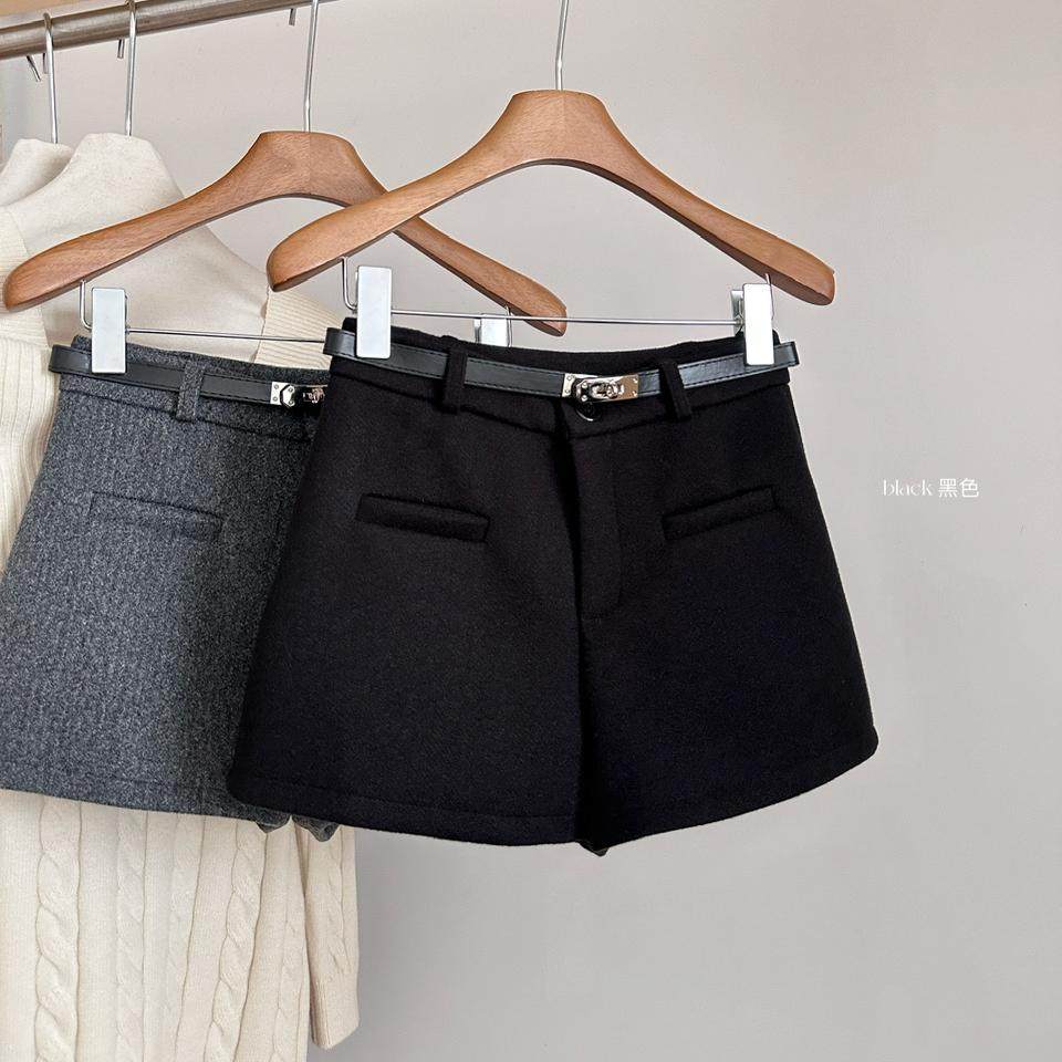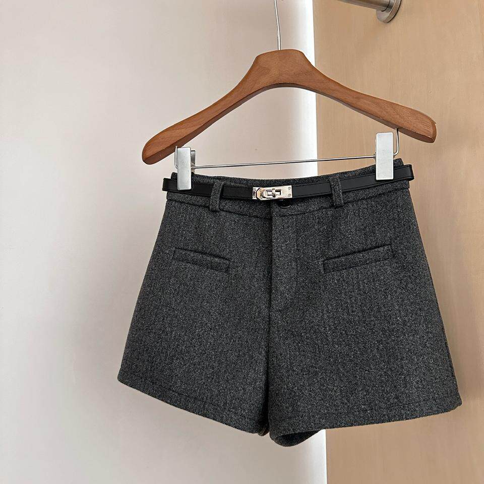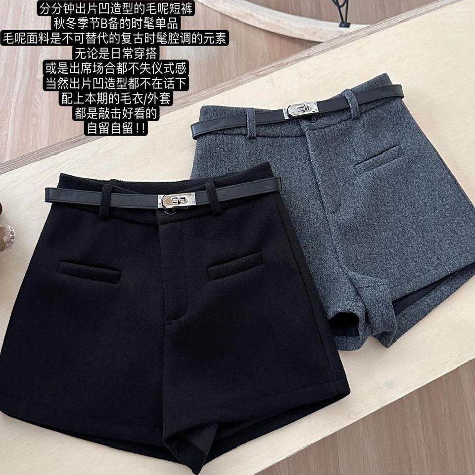 📚 灰色高级感高腰显瘦毛呢西装短裤女秋冬休闲直筒靴裤休闲外穿热裤