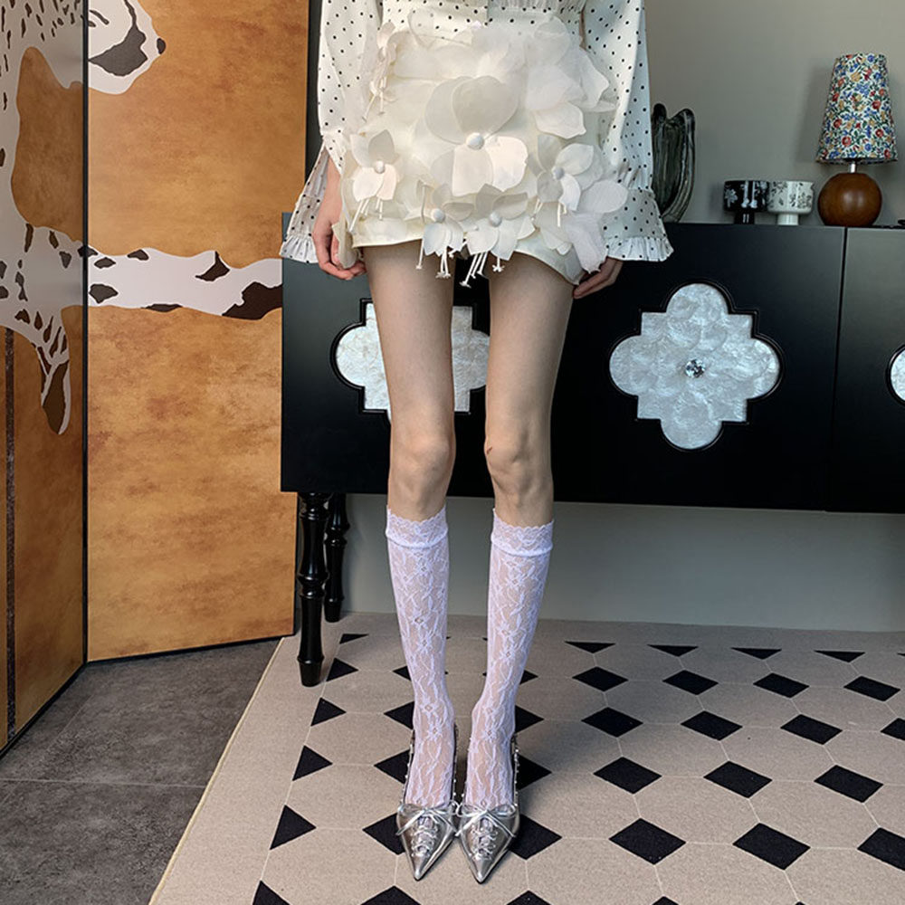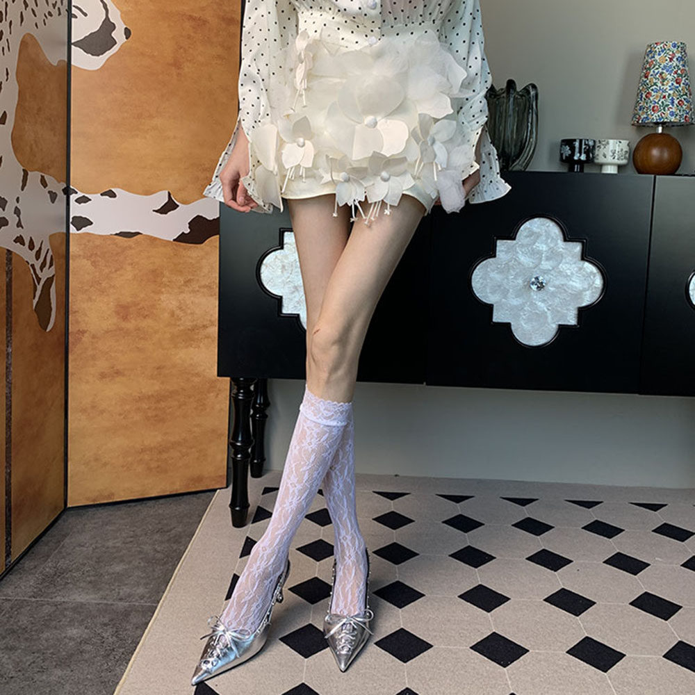 📚 不太懂得变通~夏季芭蕾风法式纯欲小众蕾丝花边白色镂空小腿袜