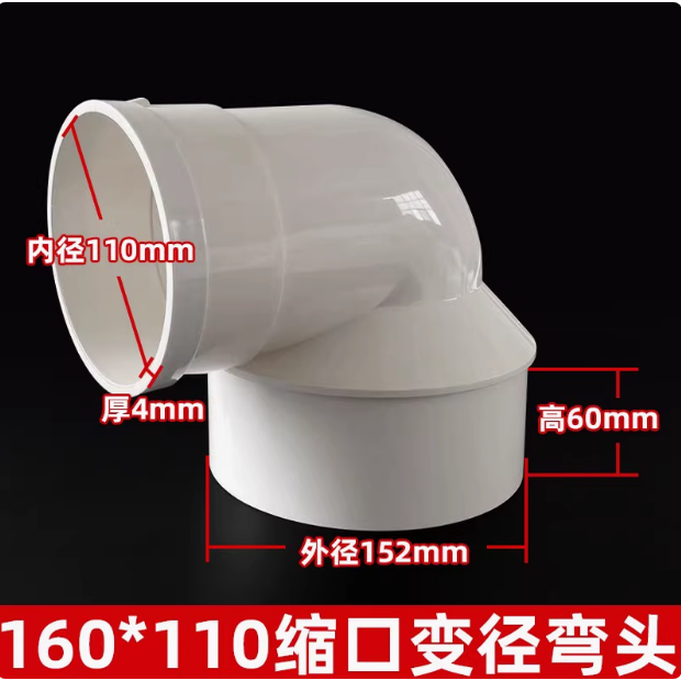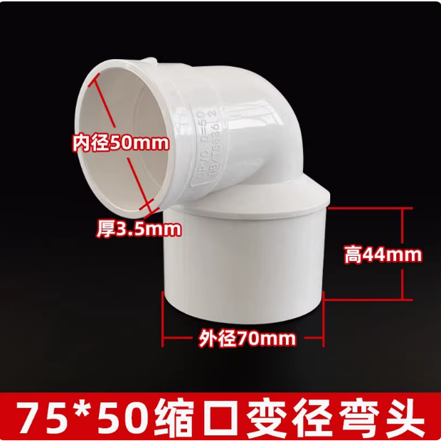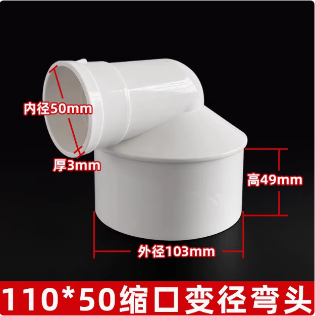 📚 PVC加厚缩口变径弯头110变50 75下缩直角接头90度异径排水管配件