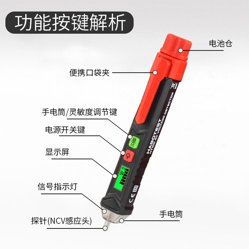 📚 小型高精度感应式验电笔非接触智能电压探测笔家用测电笔声光报警