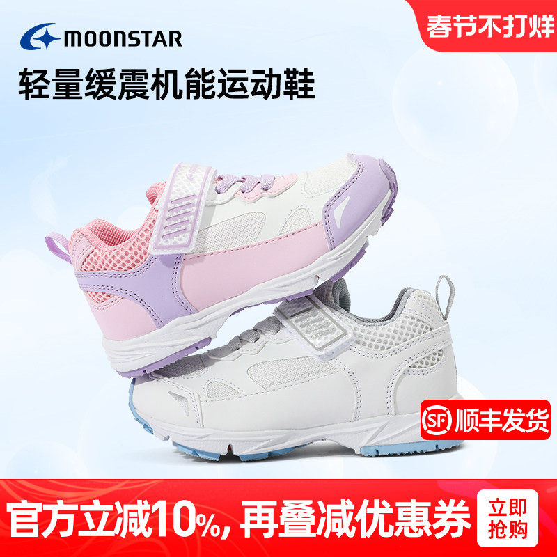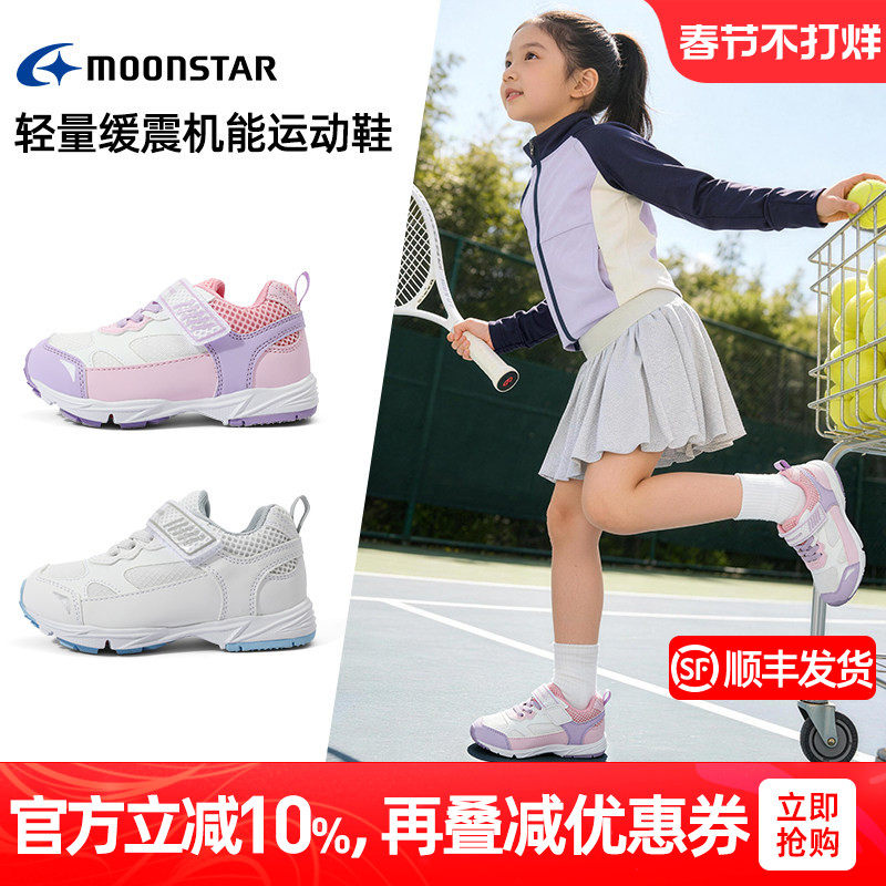 📚 MOONSTAR月星春款3-12岁轻量缓震机能运动鞋男女透气魔术贴休闲鞋