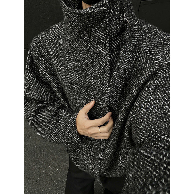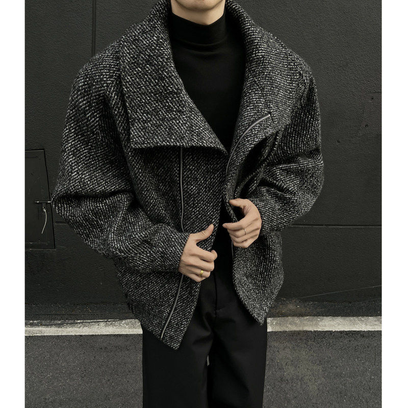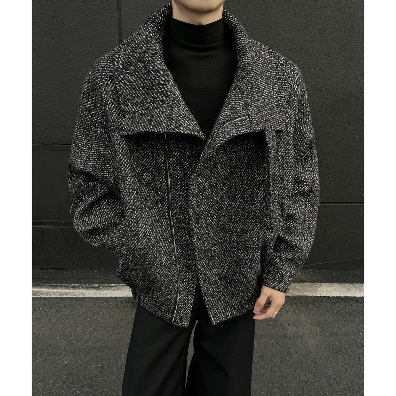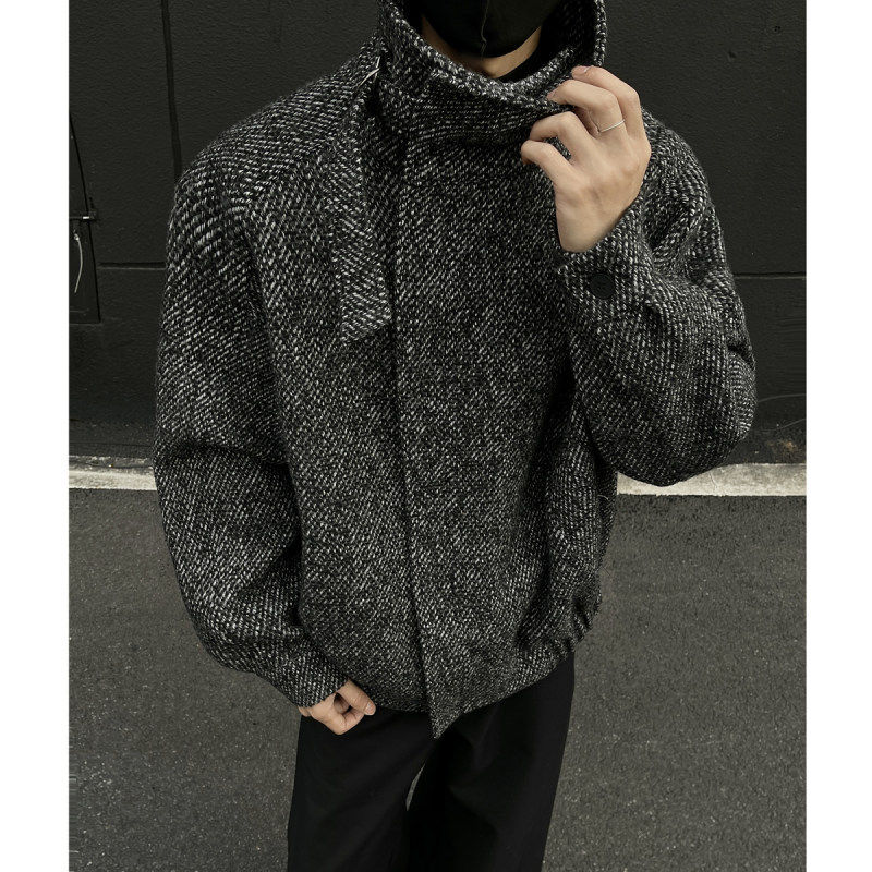 📚 秋冬老钱风复古斜纹防风高领短款毛呢大衣外套男高级感痞帅厚夹克