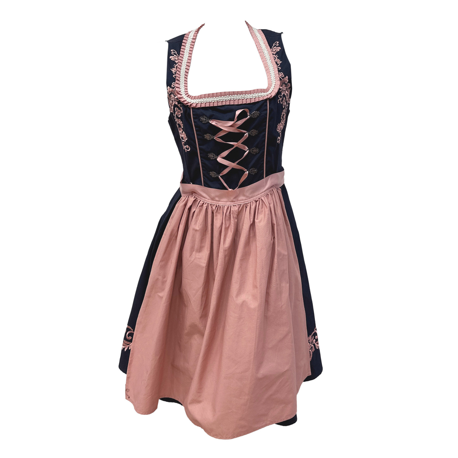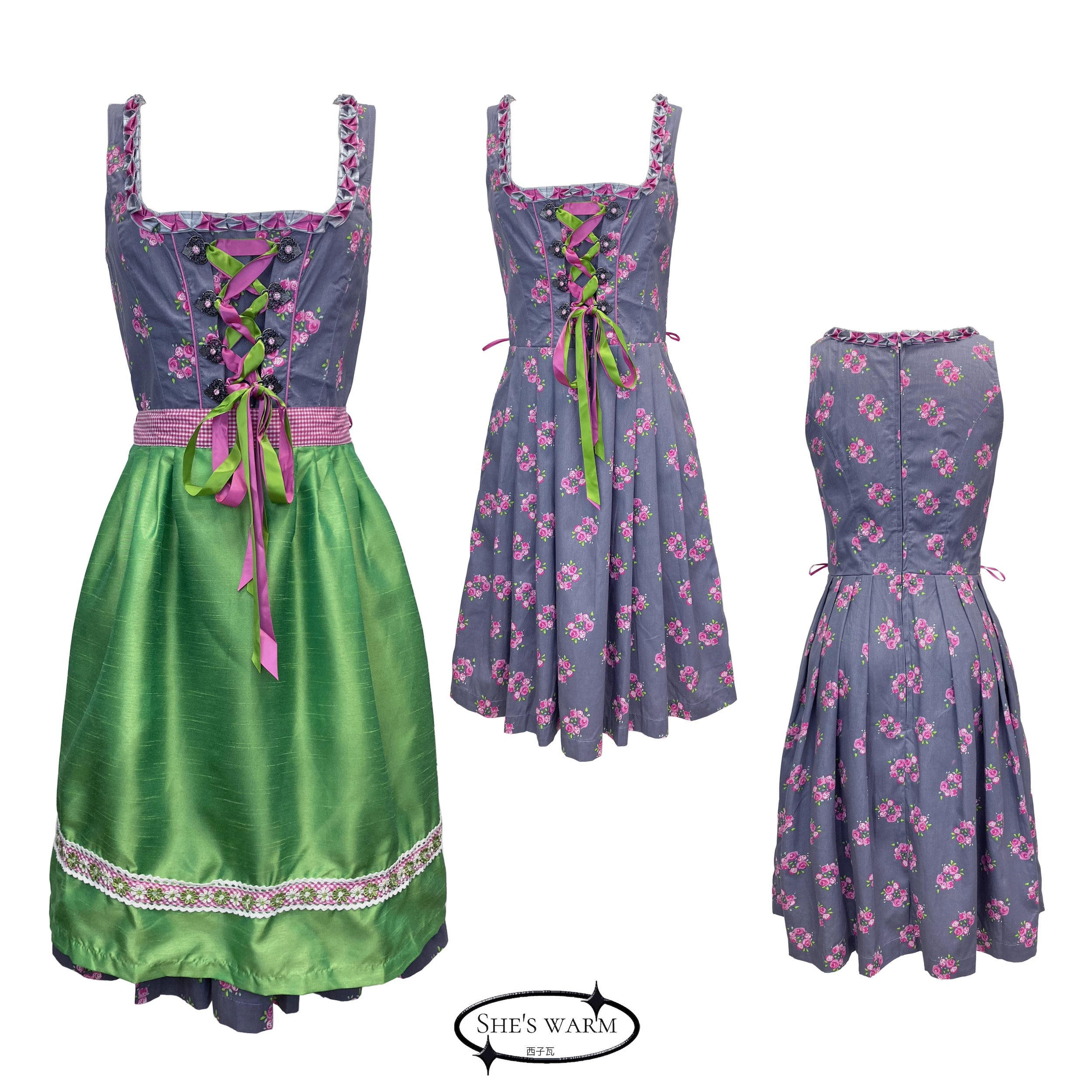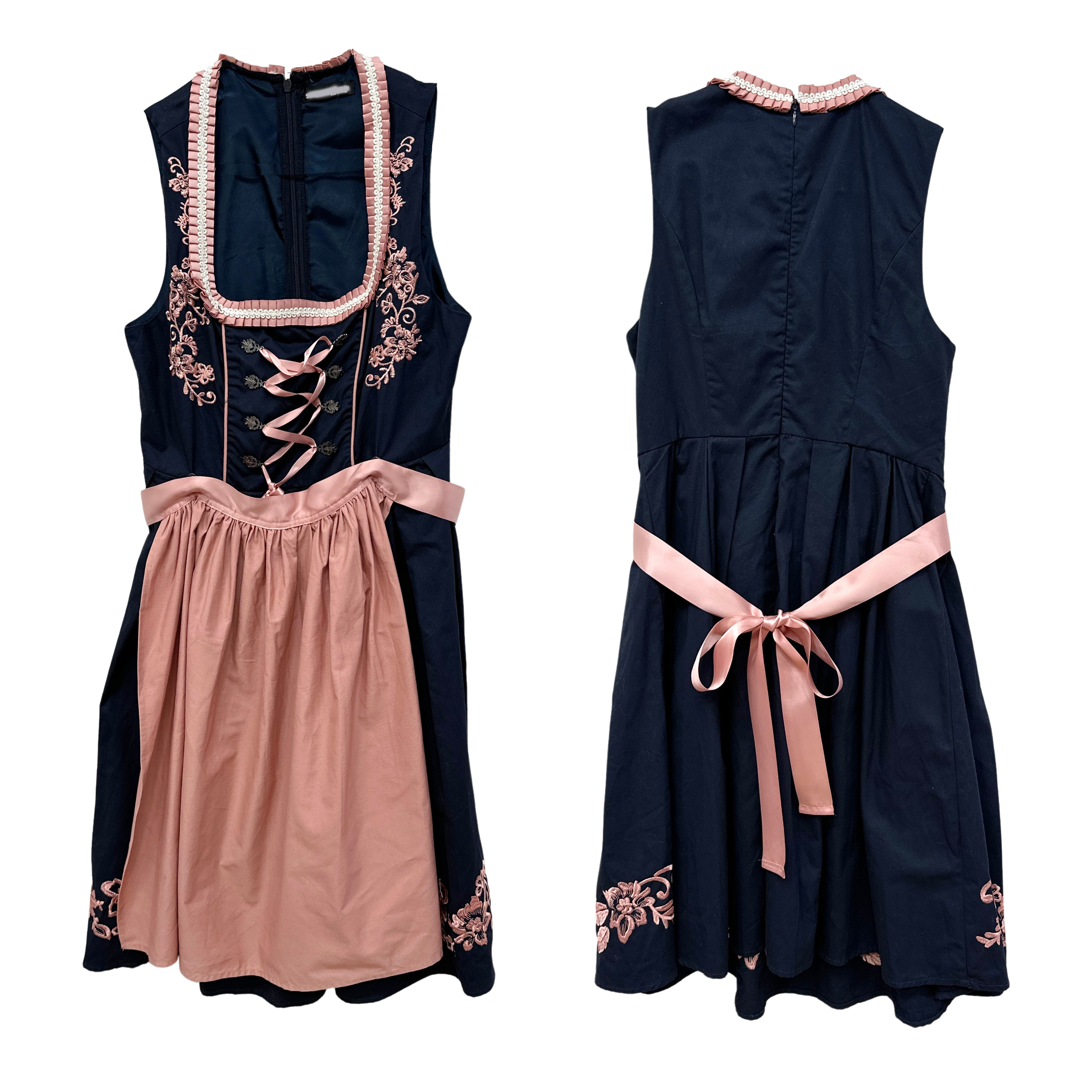 📚 巴伐利亚风浪漫复古度假民族风棉涤绑带粉色围裙低领连衣裙两件套