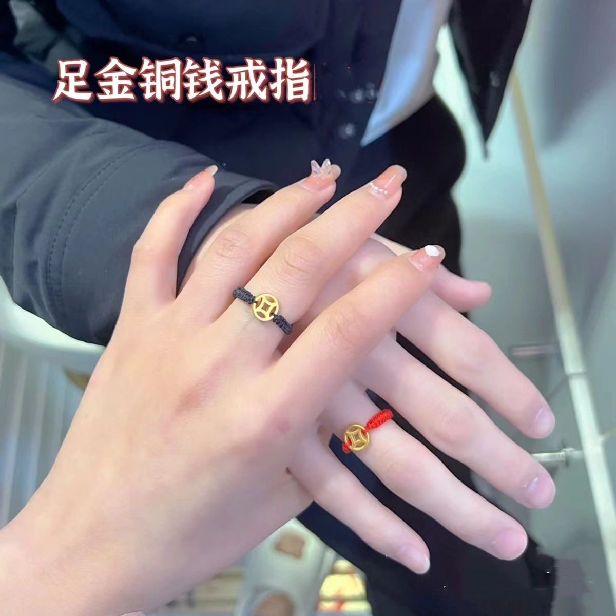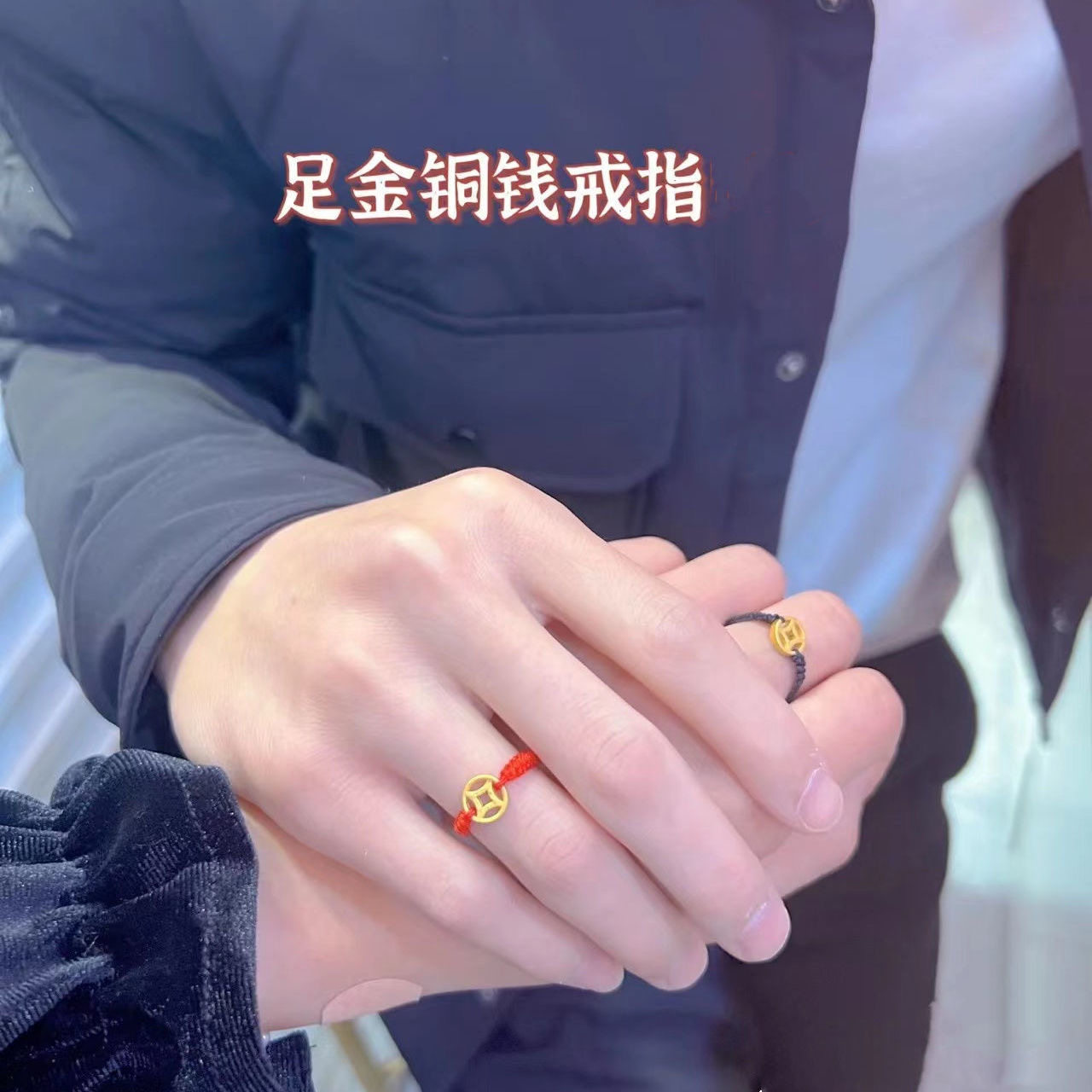 📚 小红书抖音爆款黄金招财铜钱币足金999钱币戒指小财迷情侣款指环