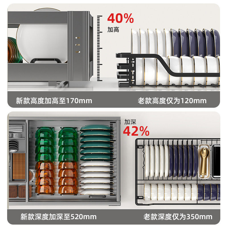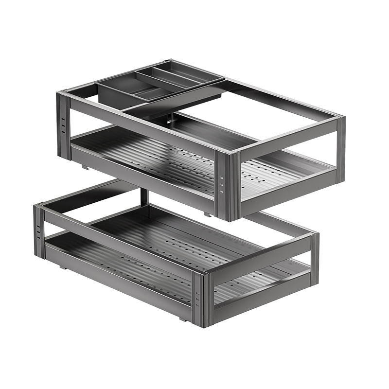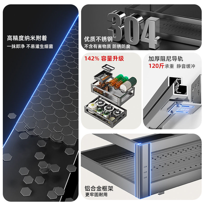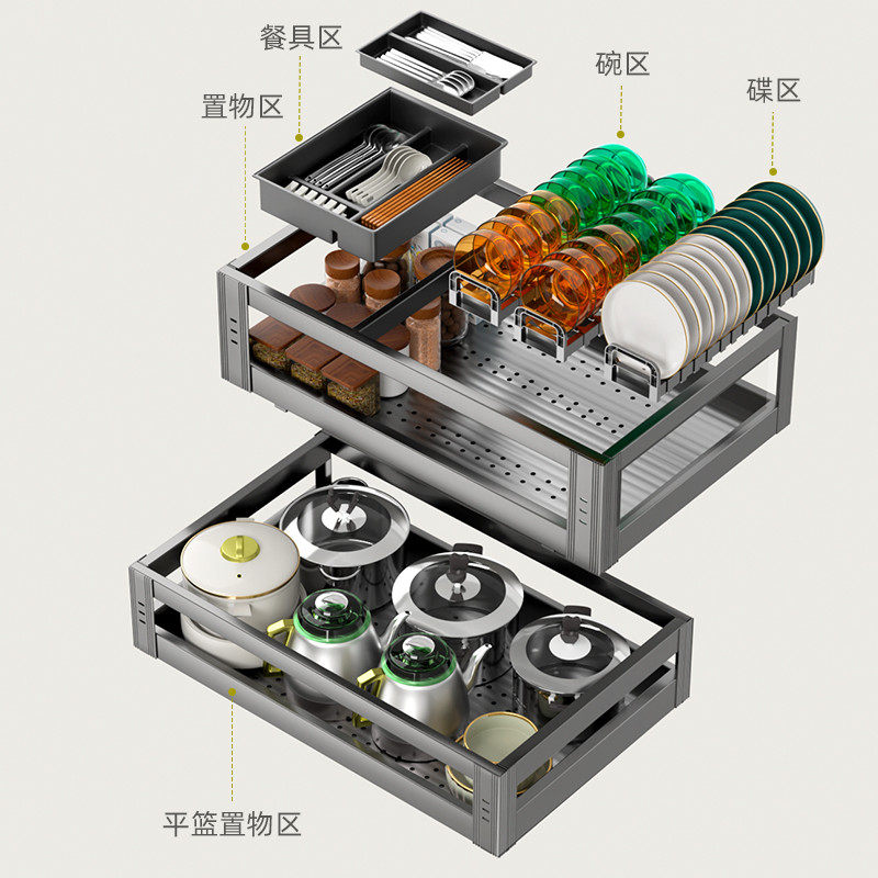 📚 拜隆拉篮厨房橱柜304不锈钢沥水碗篮抽屉式双层碗柜阻尼滑轨拉蓝