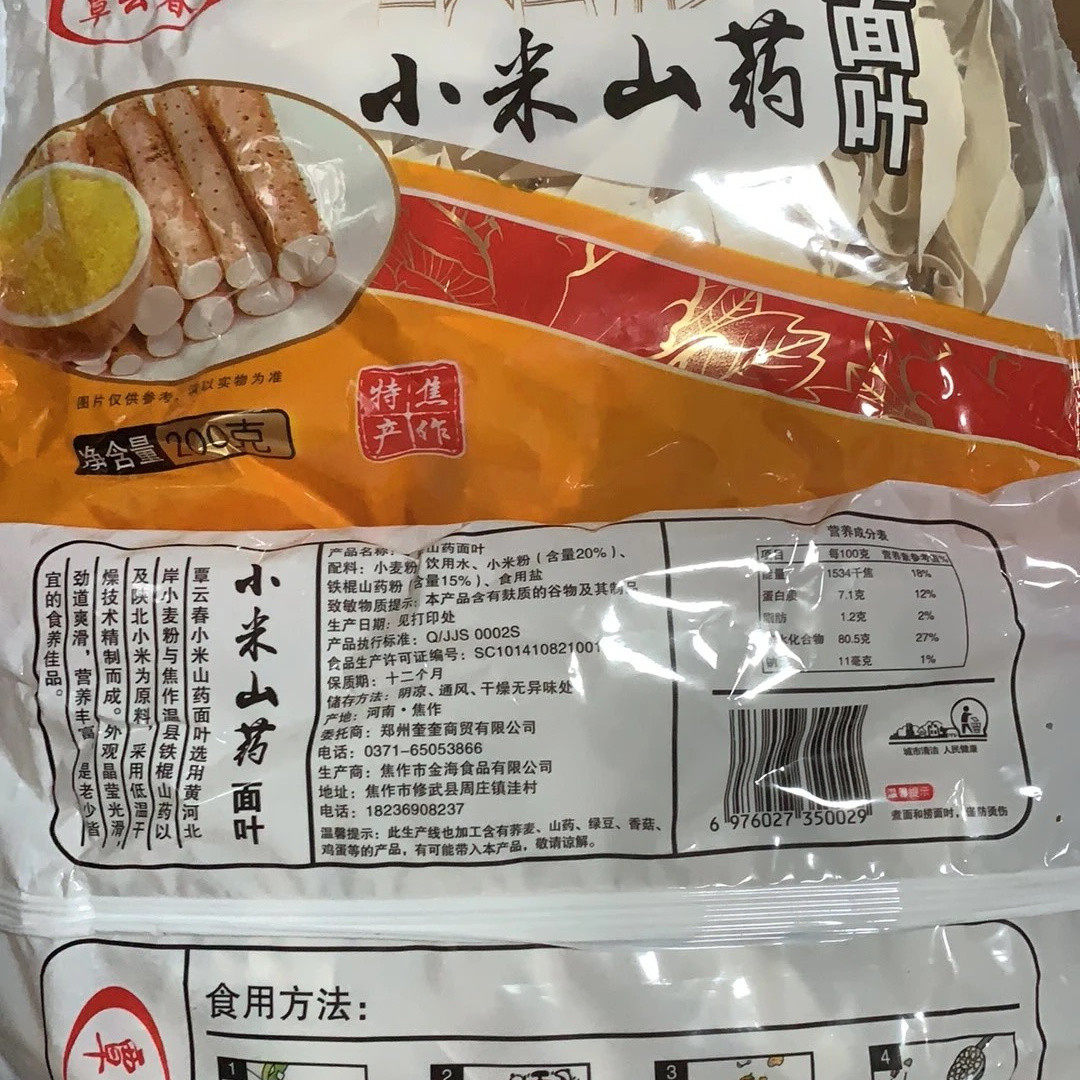 📚 覃云春铁棍山药小米面叶淮山面刀削酸汤面叶山药粉条干200g/袋