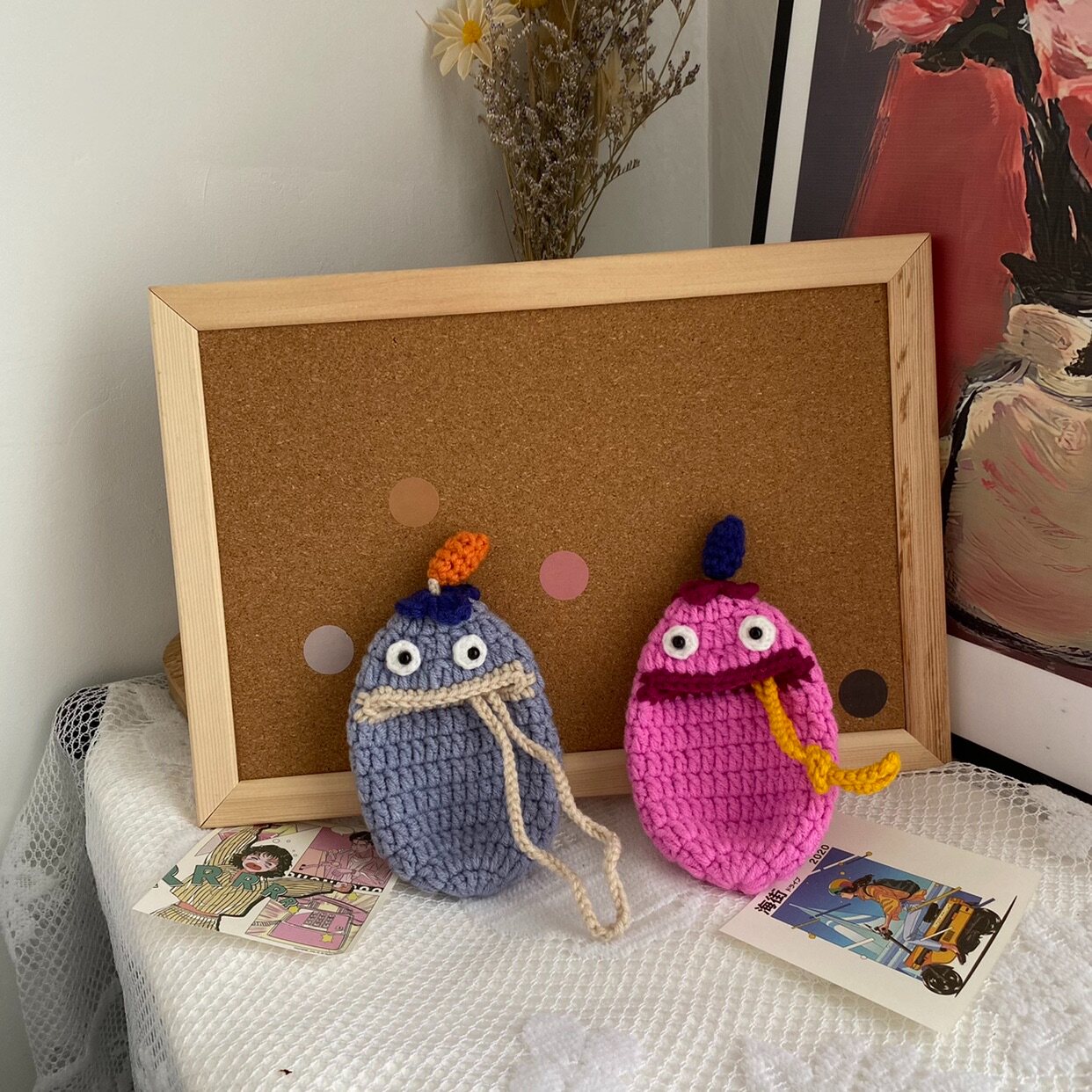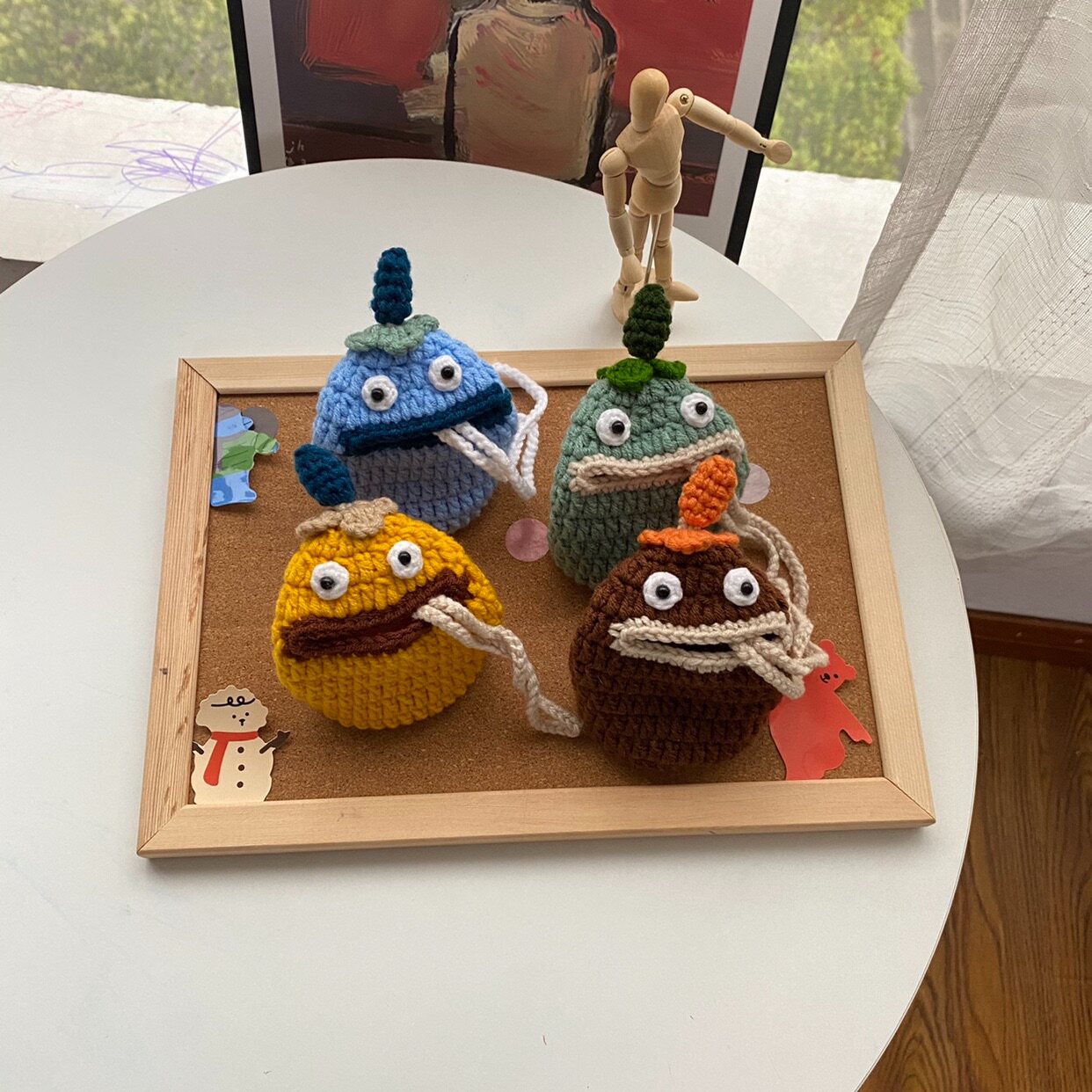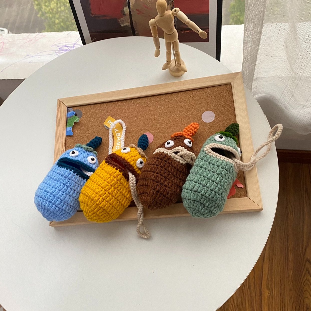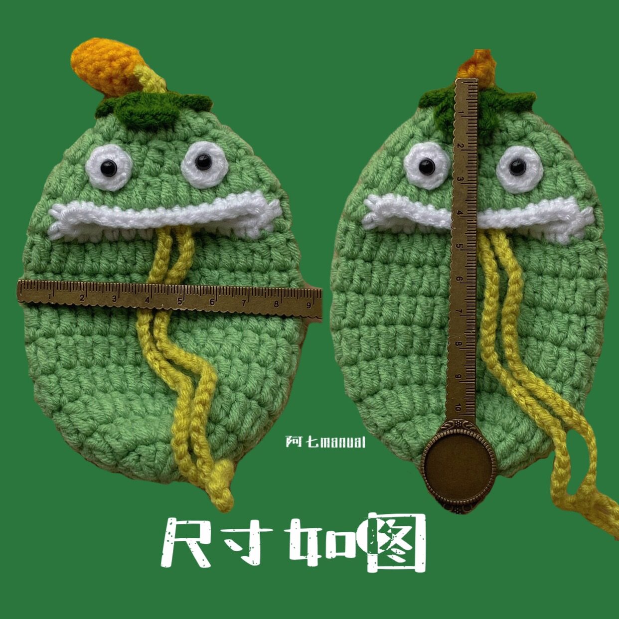 📚 阿七manual纯手工钩织可爱胖滚滚大嘴怪兽钥匙扣挂包创意收纳定制