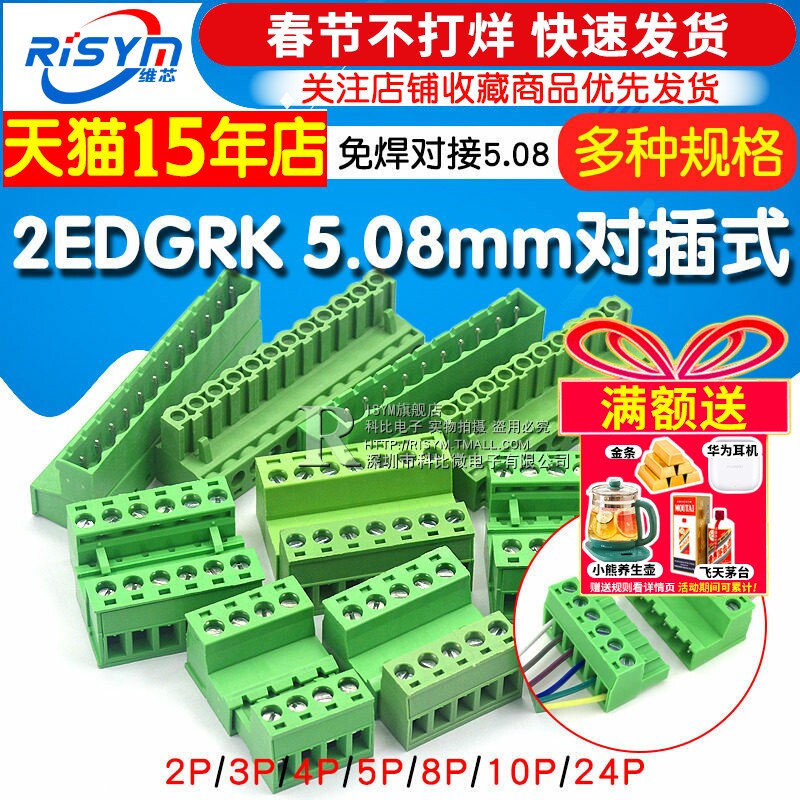 📚 免焊对接2EDG 5.08mm 对插式2EDGRK5.08 插拔绿色接线端子2p-24p