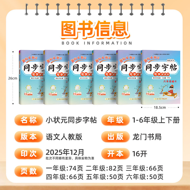 📚 2026春黄冈小状元同步字帖一年级二年级三四五六年级上下册语文人教版小学同步练习册练字帖描红拼音田字格铅笔楷书专项训练广东