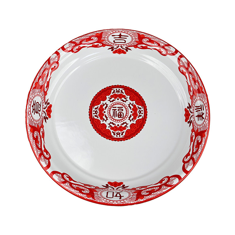 📚 搪瓷盘子复古怀旧老式加厚红色吉祥如意珐琅圆形家用菜盘水果平盘