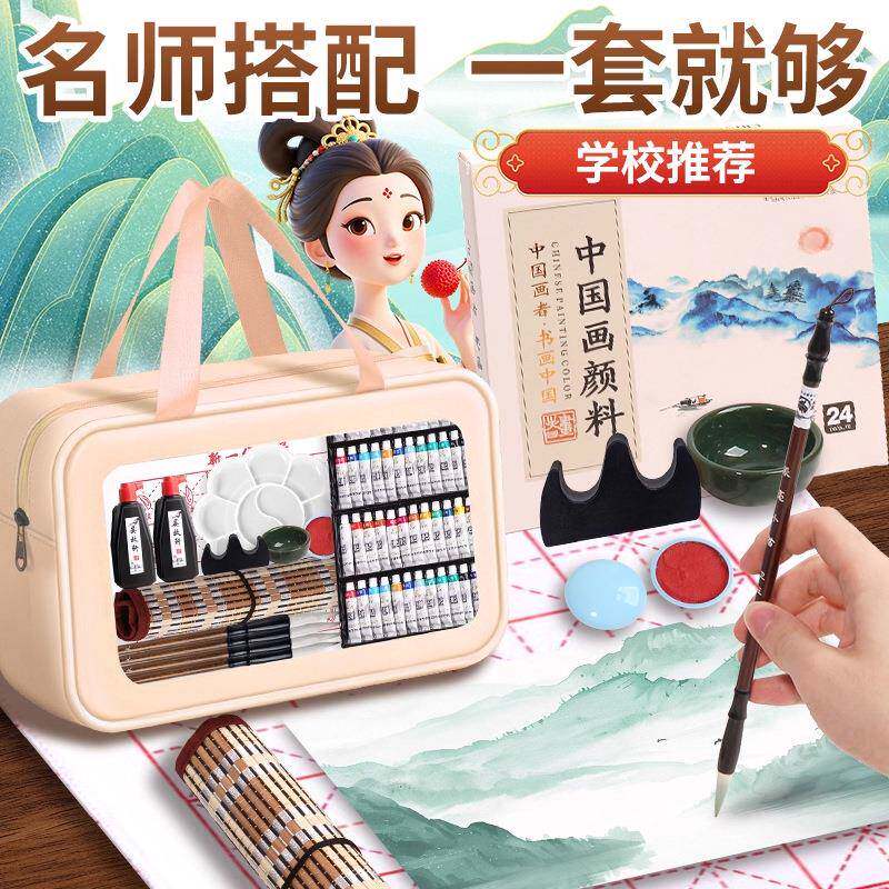 📚 山国画材料808套装中水画工笔画12色初学者画颜料水墨国画工具全