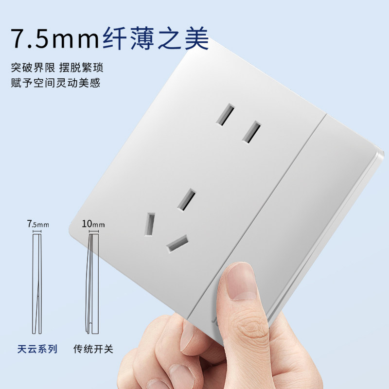 📚 俊朗开关插座面板正品JUNON官方旗舰超薄天云 白色86型暗装套餐