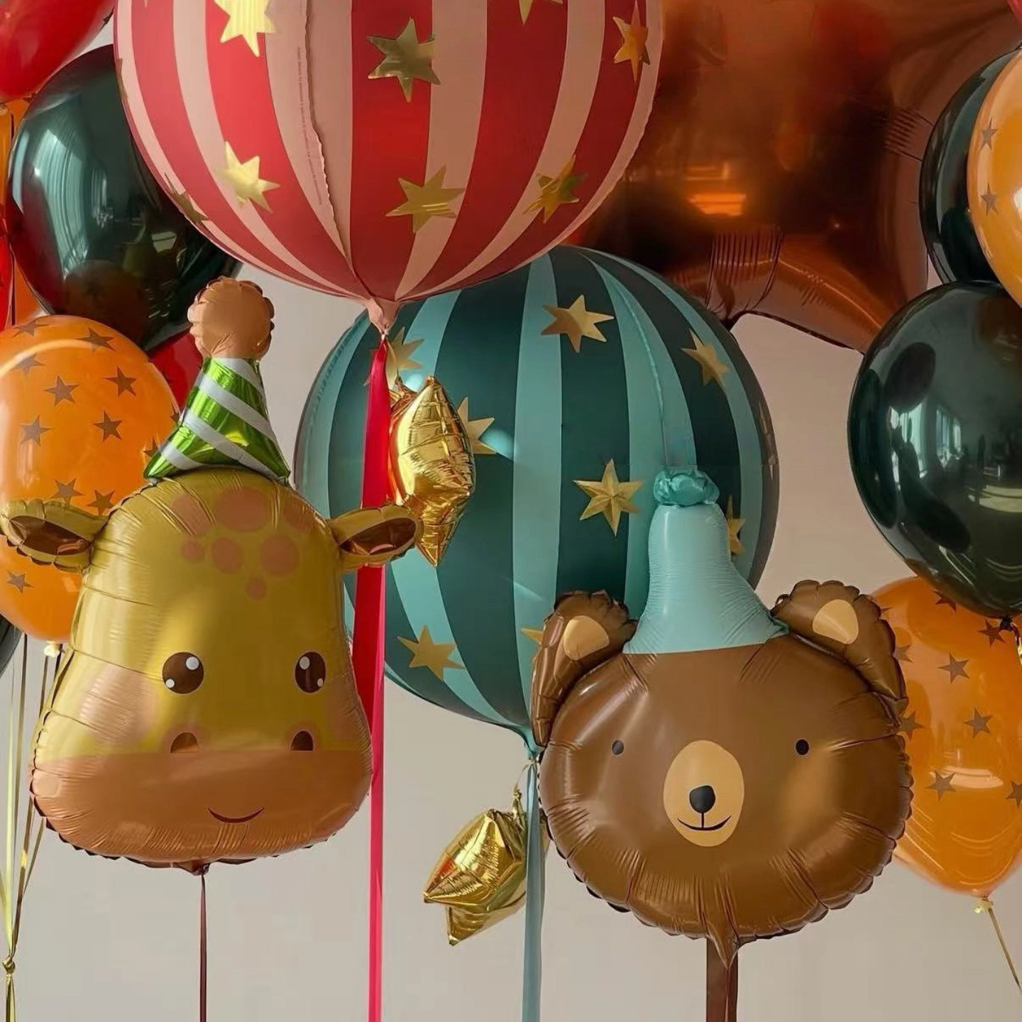 📚 马戏团动物铝膜气球斑马大象长颈鹿海狮儿童生日派对装饰场景布置