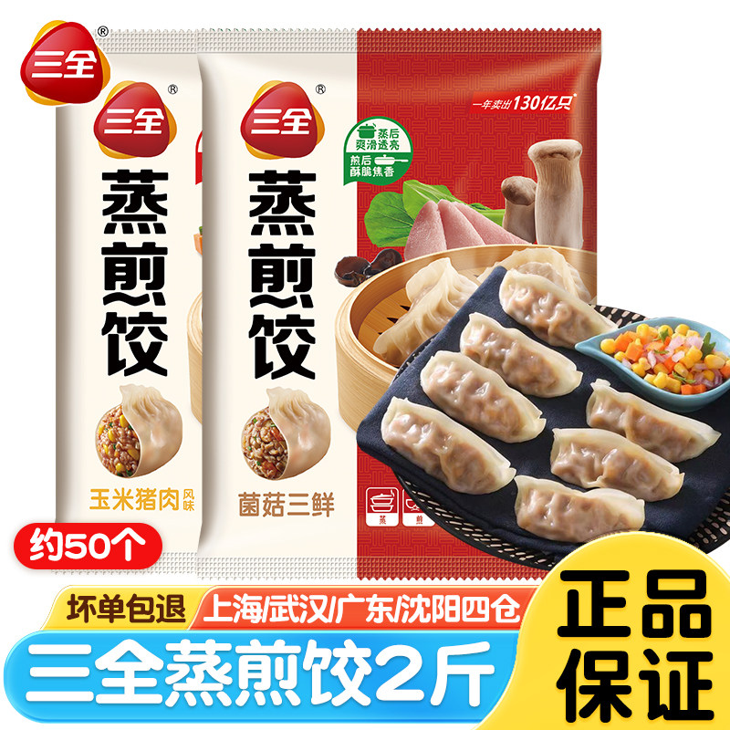 📚 三全蒸煎饺2斤早餐半成品蒸饺速食锅贴大葱猪肉玉米猪肉风味饺子