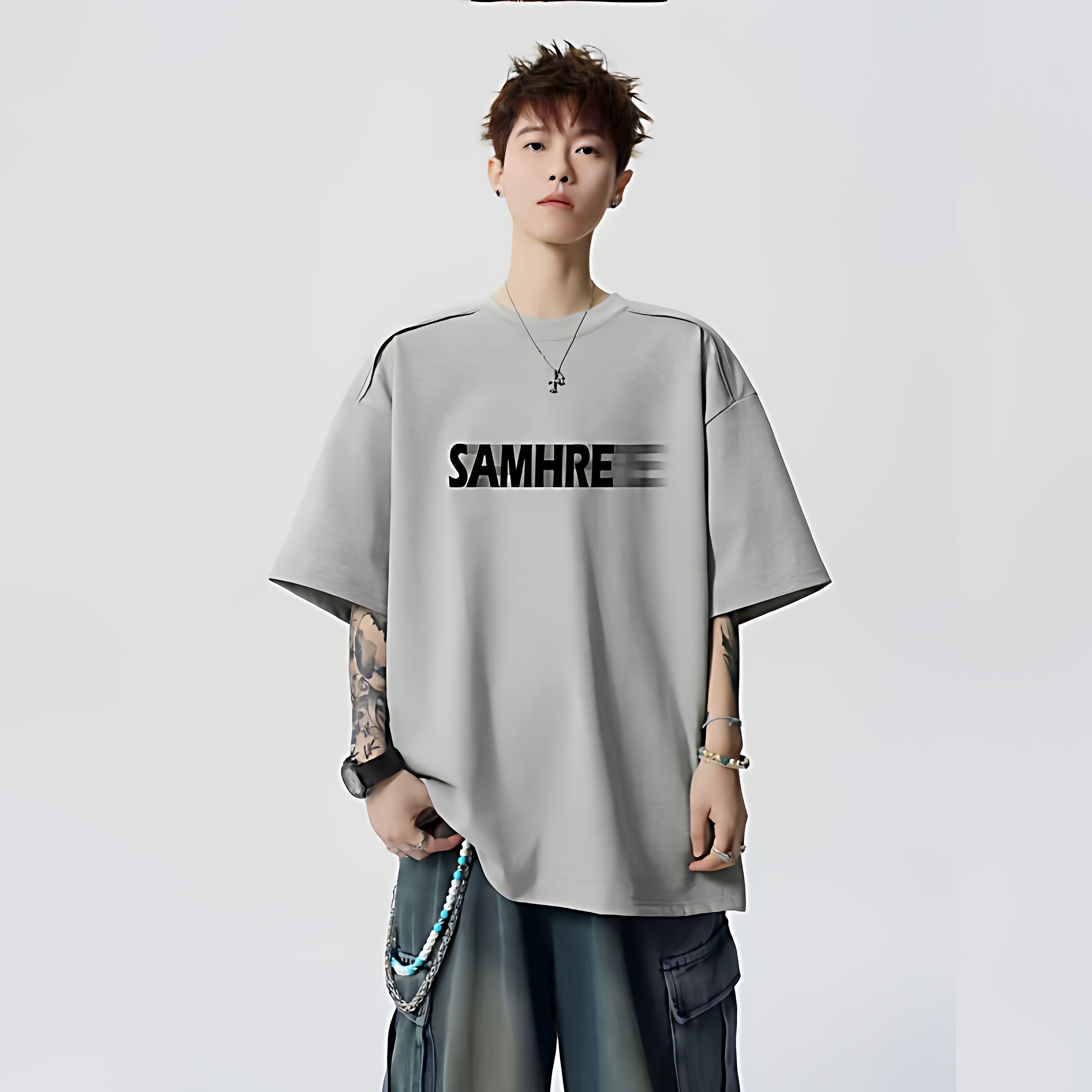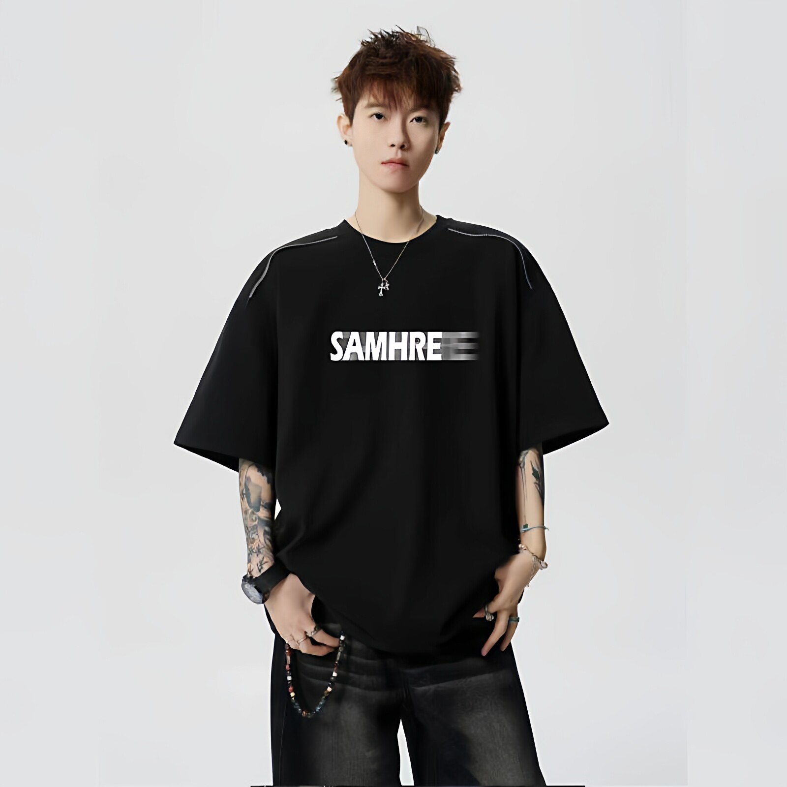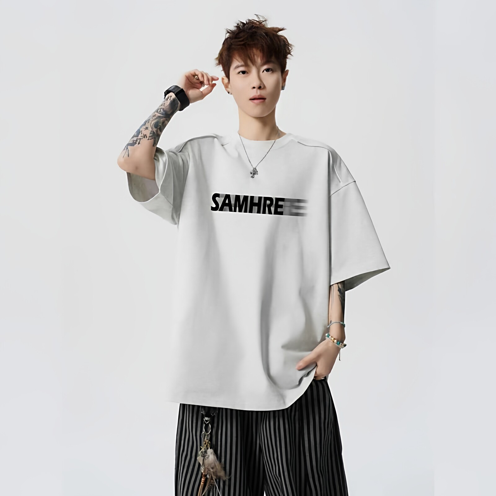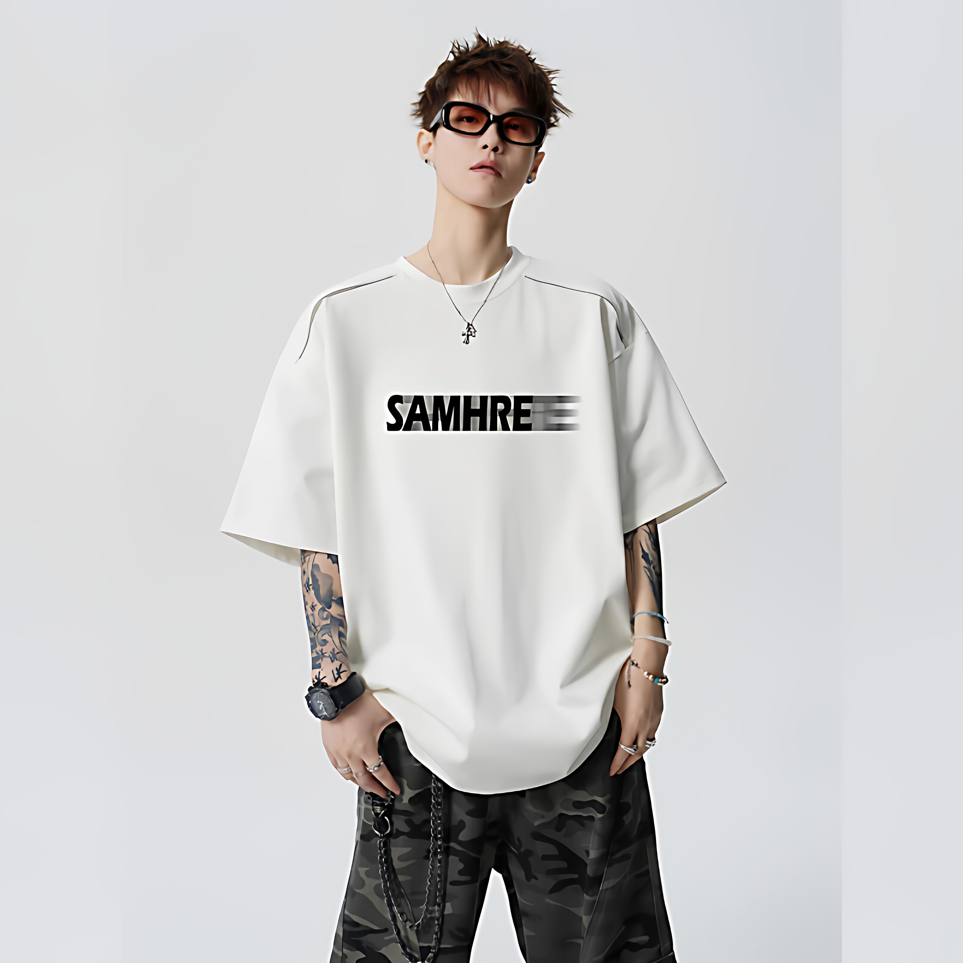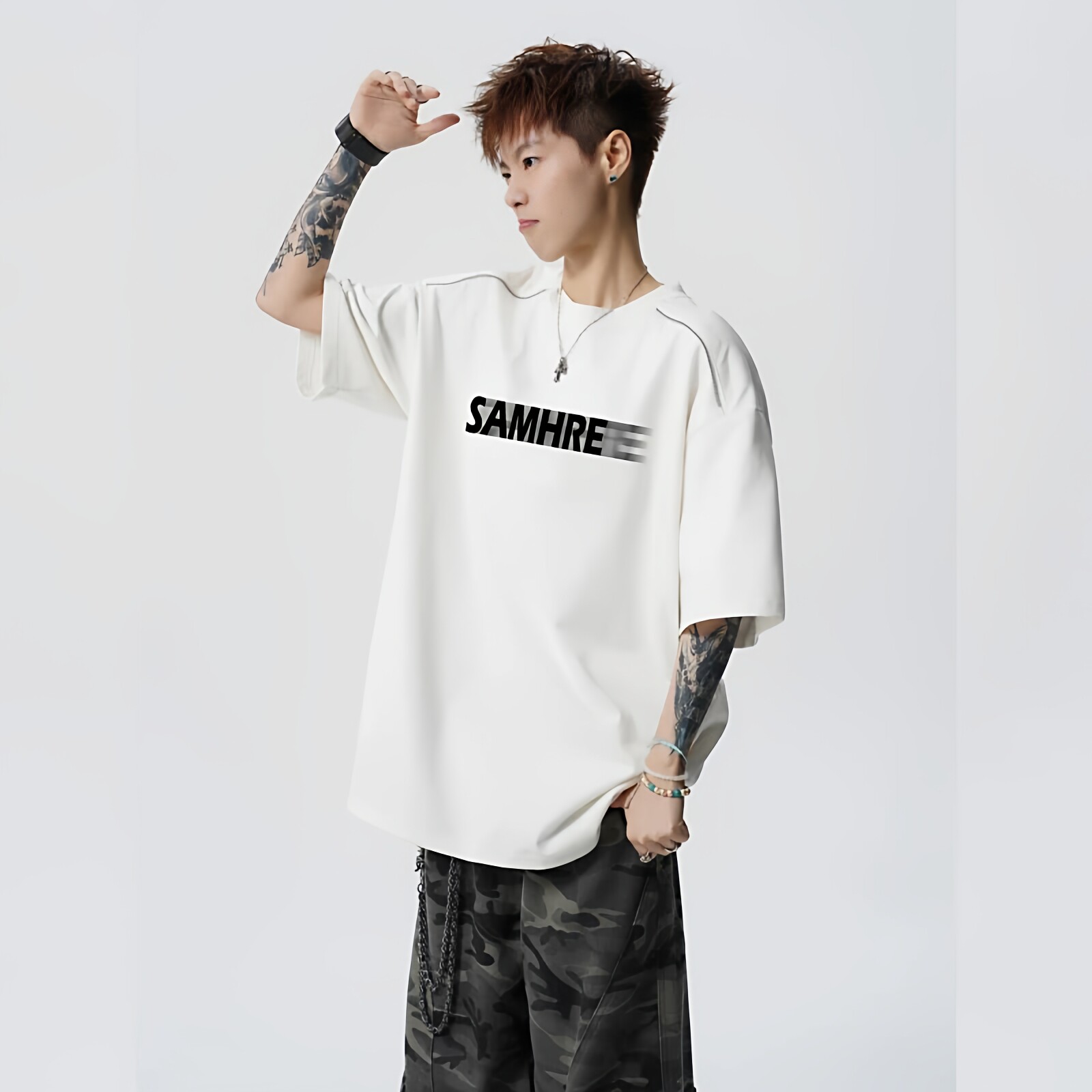 📚 美式痞帅潮牌重磅白色短袖t恤男生夏季新款ins设计感落肩半袖上衣
