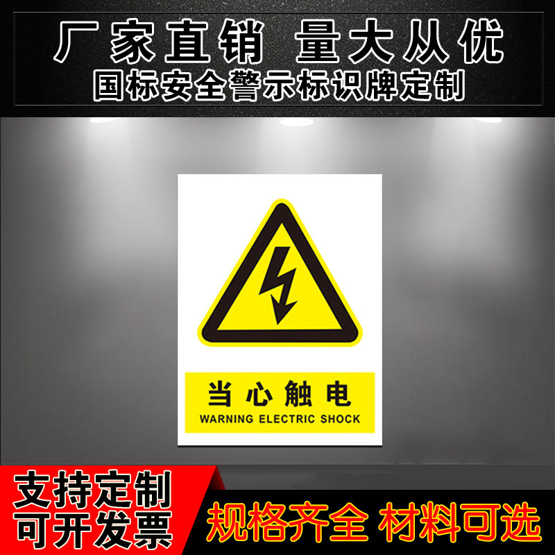 📚 当心触电标识牌安全标识牌警告标志工厂车间消防警示牌贴纸