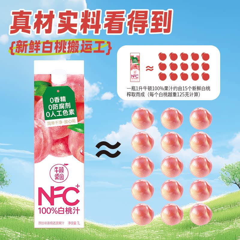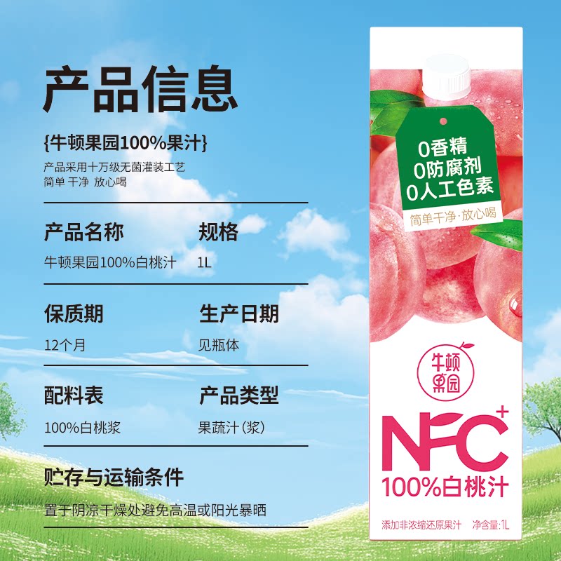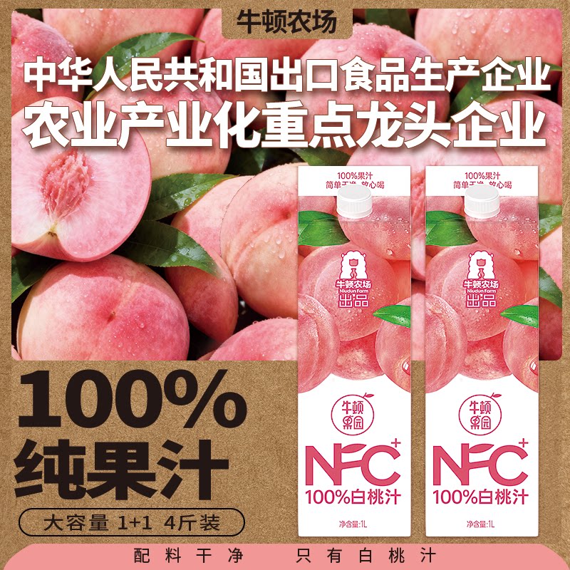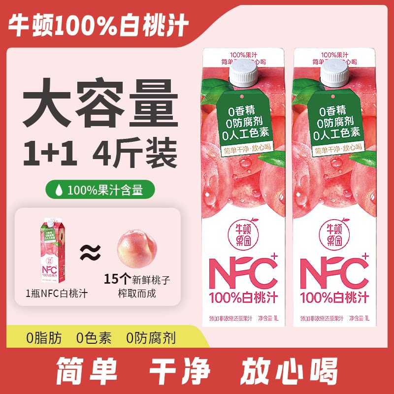 📚 牛顿农场100%NFC白桃汁无添加大瓶聚会宴席装1L*2瓶