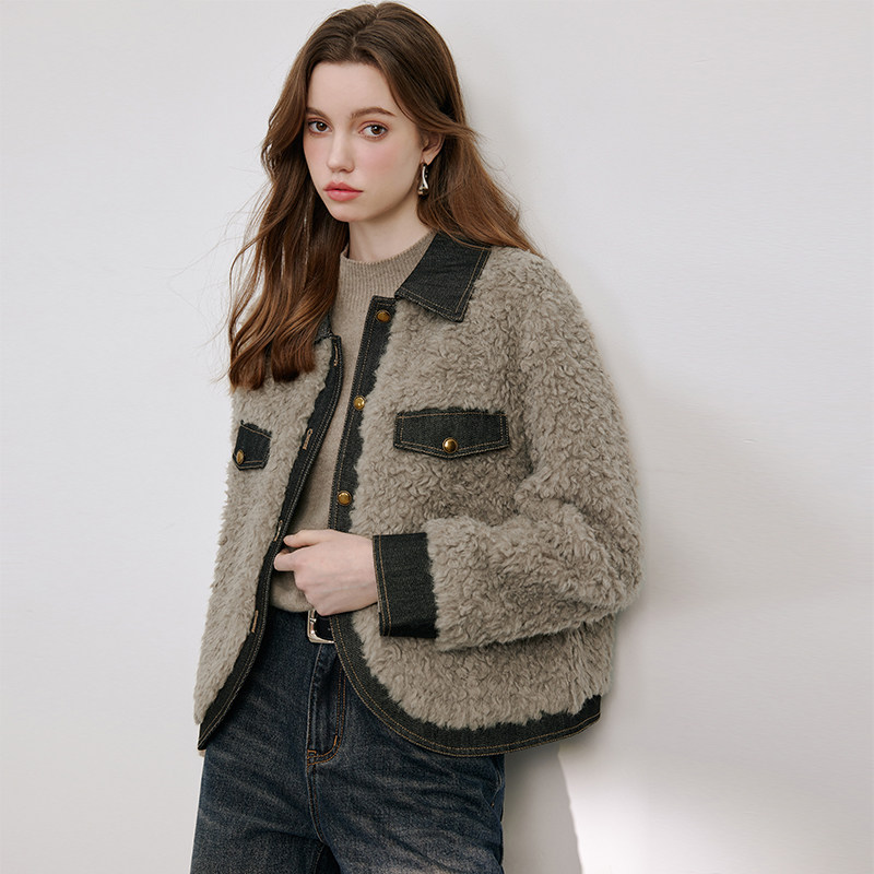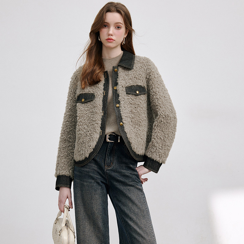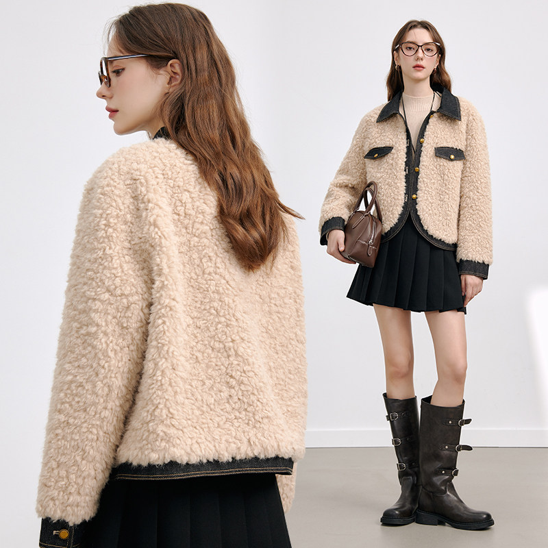 📚 米色毛绒短款外套长袖上衣kbne2025气质秋冬季新款高级感毛衣女装