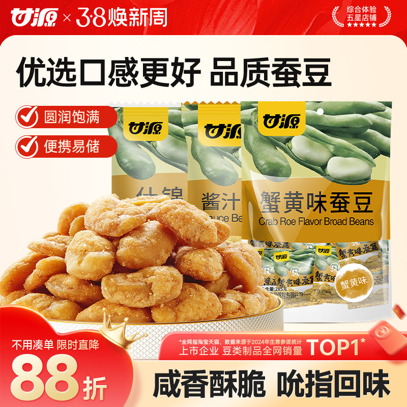 📚 甘源蟹黄味/酱汁牛肉味蚕豆年货摆盘兰花豆香酥下酒菜零食炒货