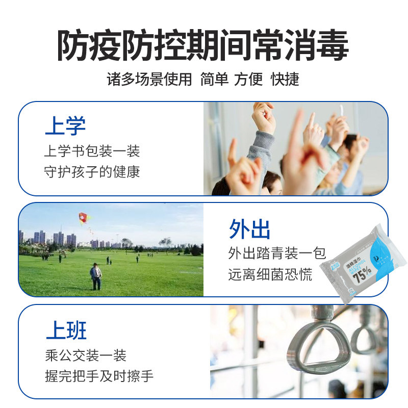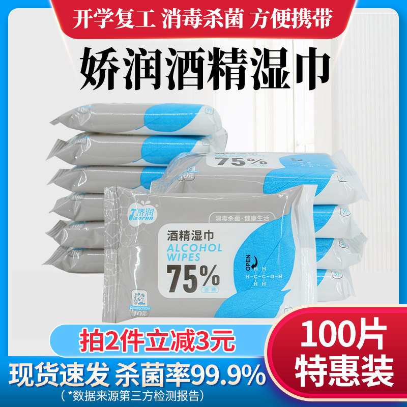 📚 娇润75%酒精湿巾纸10小包便携式随身装手部杀菌棉片100片消毒湿巾
