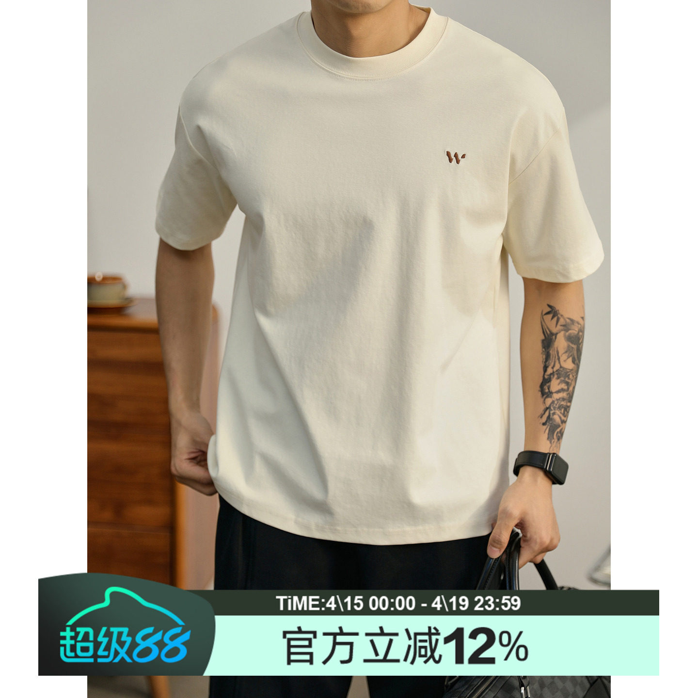 📚 LUUD 男士简奢气质感胸口小刺绣T恤夏季休闲通勤百搭落肩短袖上衣
