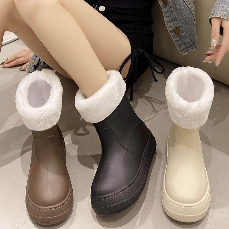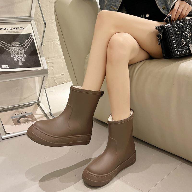 📚 日系雨鞋女时尚外穿成人防水鞋中筒防滑耐磨户外雨靴加绒水靴胶鞋