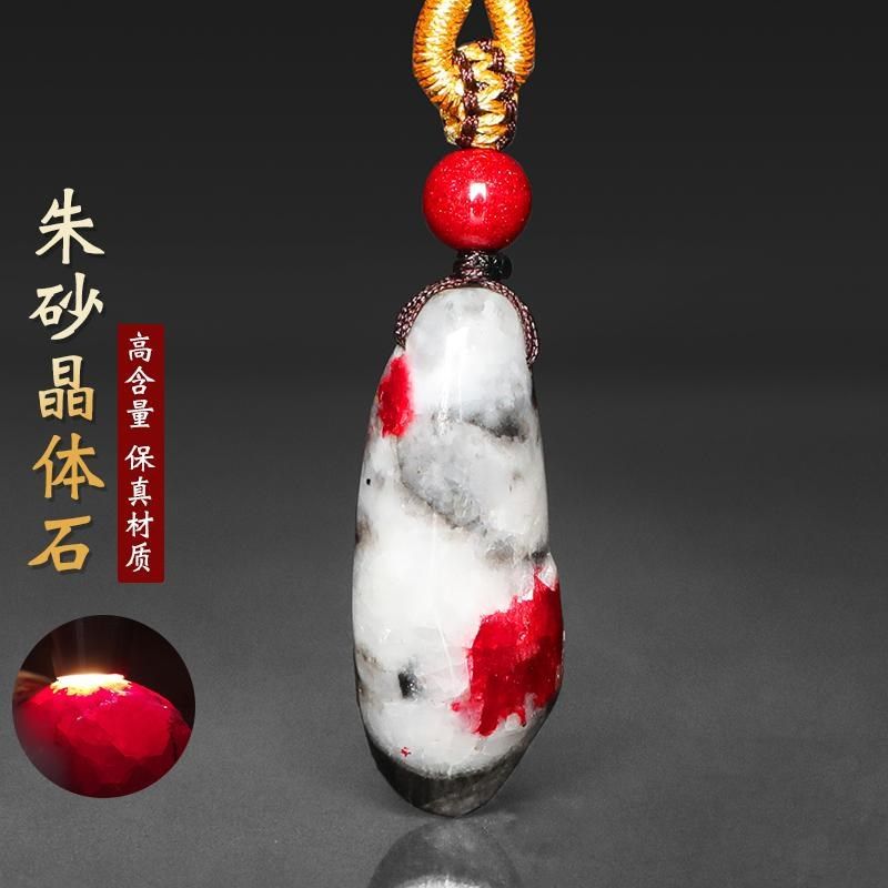📚 贵州万山朱砂吊坠女士原矿晶体石随E行全透光挂件男收藏送礼情侣