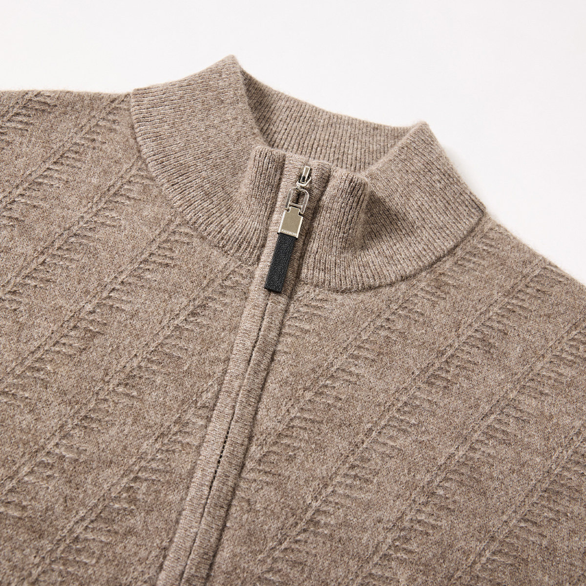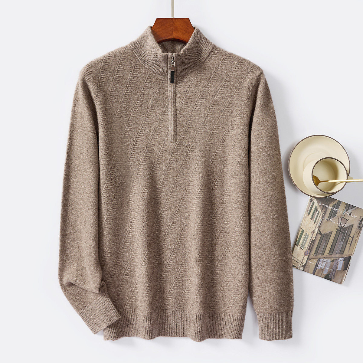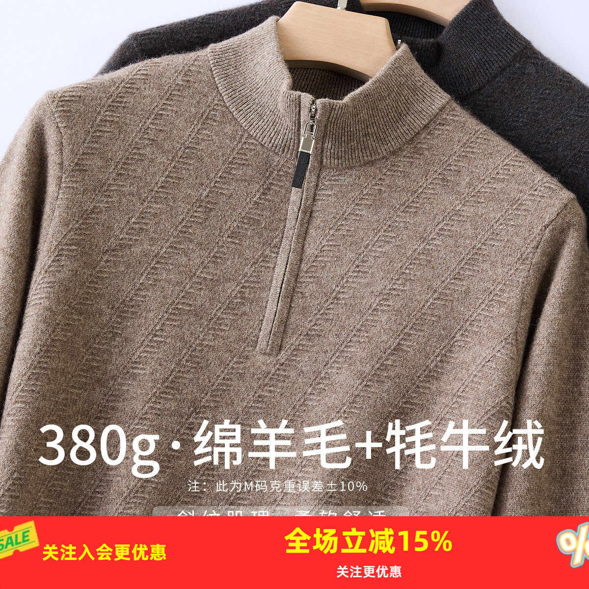 📚 金菊加厚绵羊毛+耗牛绒秋冬男羊毛衫半高领拉链斜纹肌理时尚利落