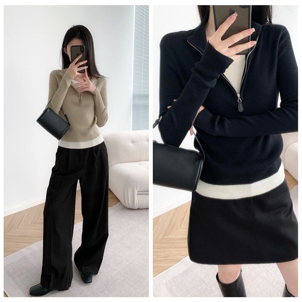 📚 休闲半拉链 两穿假两件拼色衫秋季长袖套头利落毛衣
