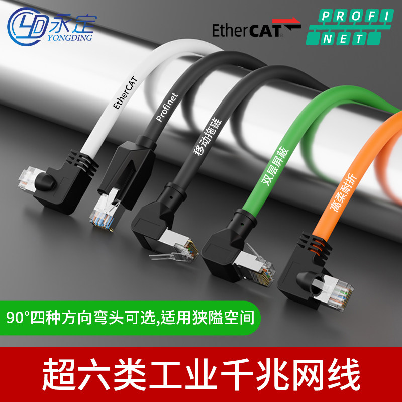 📚 工业网线90度弯头跳线伺服Profinet/EtherCat超六类PLC千兆双屏蔽