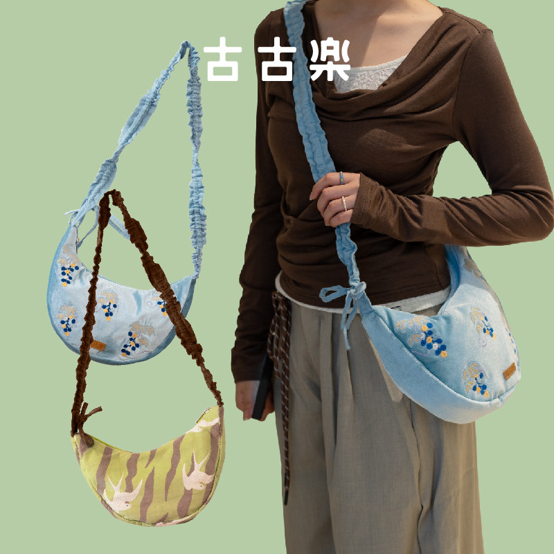 📚 古古楽gugu古画里的包包秋冬丝绒百搭单肩斜挎包饺子包灯芯绒时尚