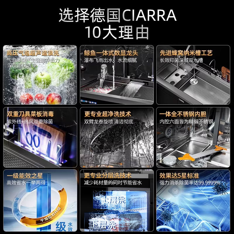 📚 德国CIARRA集成水槽洗碗机一体气泡洗家用洗菜机14套无残水-AKC12
