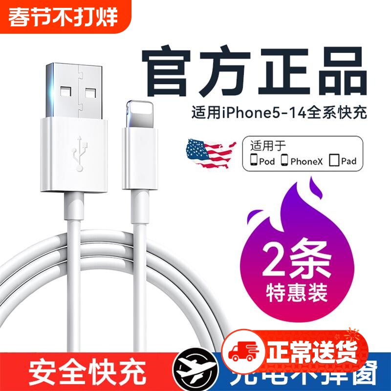 📚 快冲冲适用于苹果14iPhone11快充数据线6s手机充电线8plus加长2米7P器12pro闪充13短ipad冲电xr平板xsmax车载