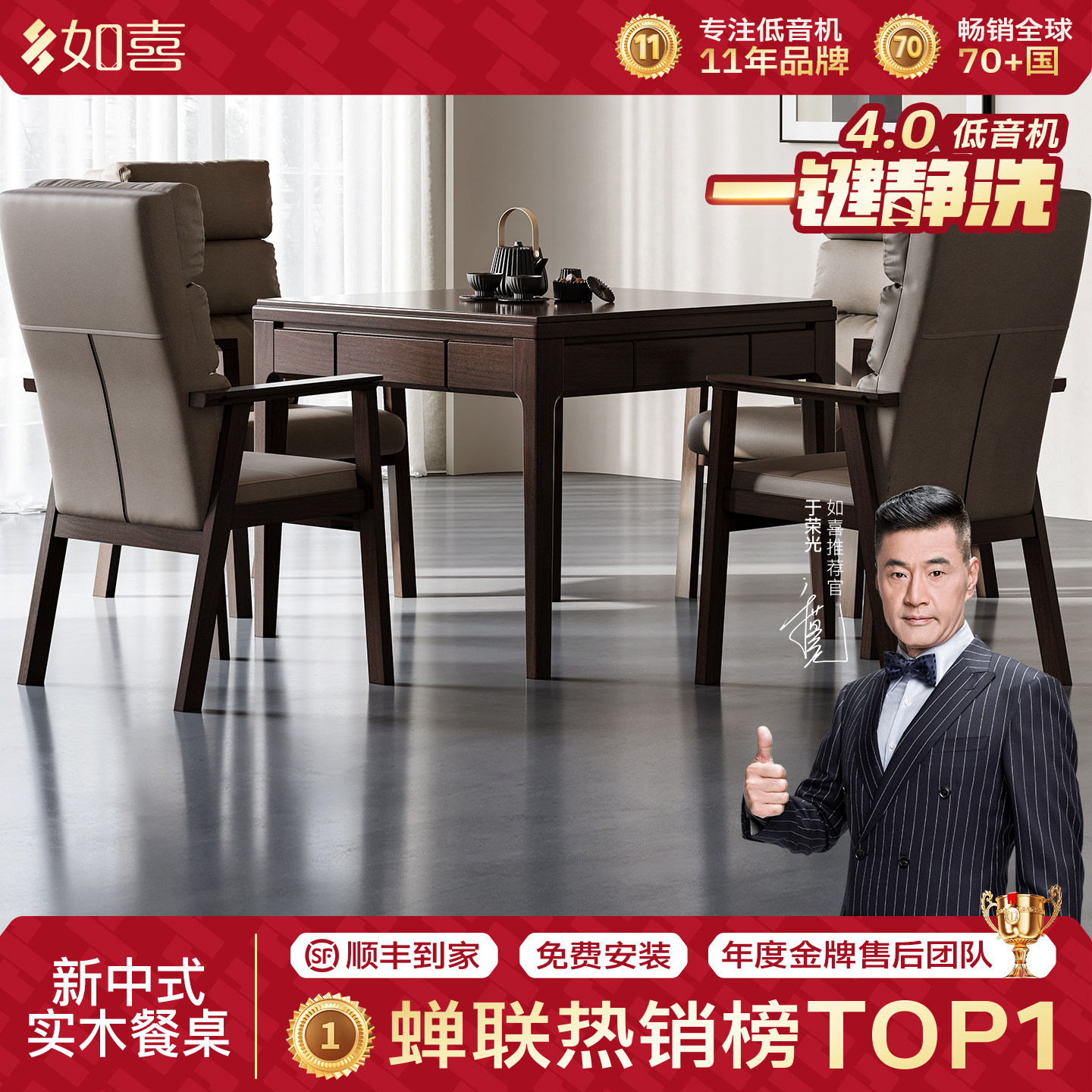 📚 如喜新款中式实木全自动麻将机低音餐桌两用家用电动麻将桌