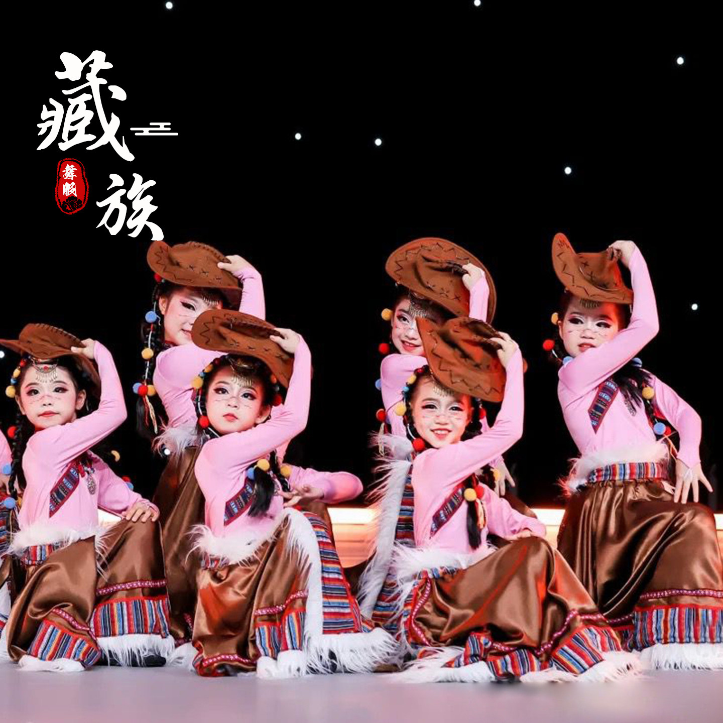 📚 儿童藏族舞蹈服女童民族风牧民新歌表演服帽子道具次仁拉索民族装