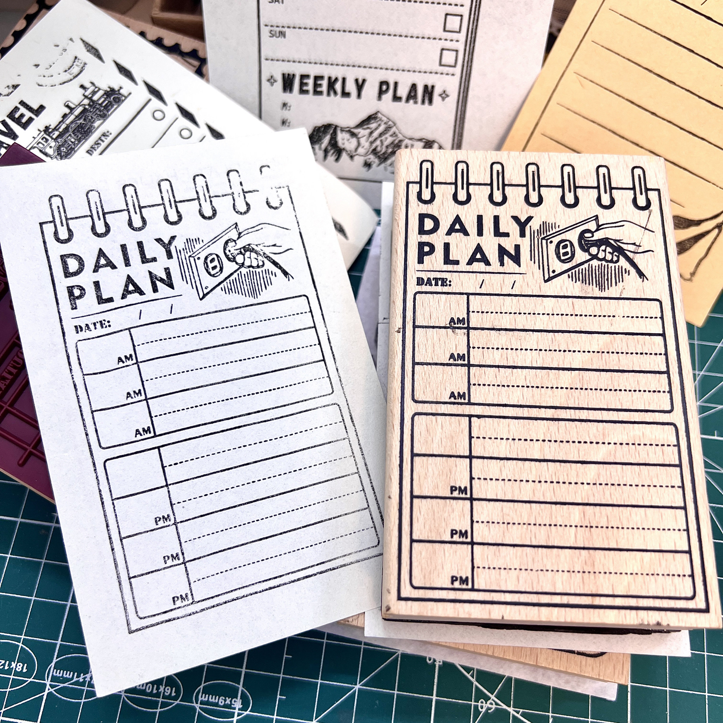 📚 计划印章复古木质手帐DIY印章时间管理收入开支备忘录表格大印章