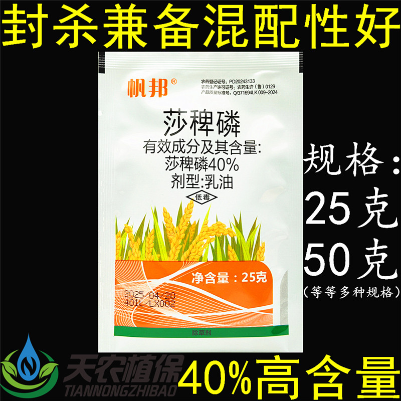 📚 帆邦 40%莎稗磷 水稻旱稻田抗性稗草青稗稻稗莎草封闭农药除草剂