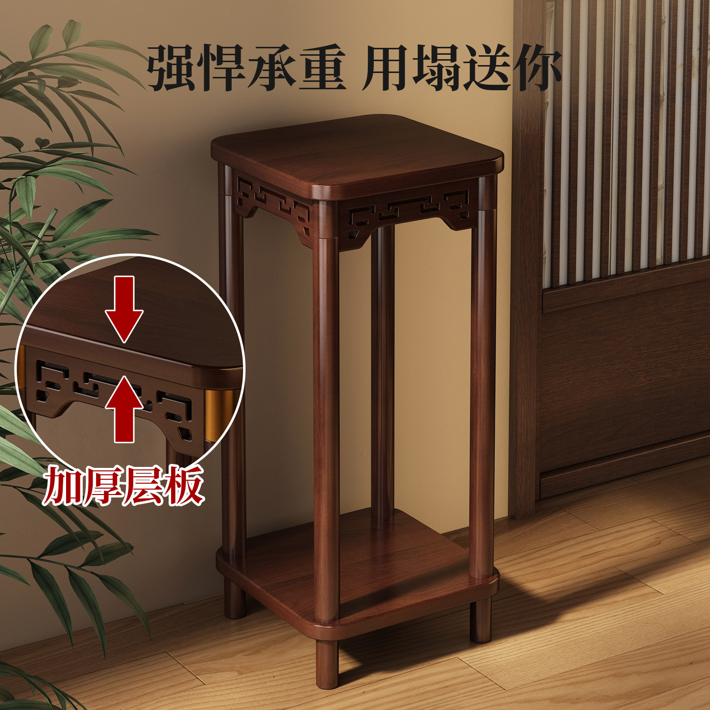 📚 实木花架子客厅落地式中式博古架阳台置物架植物摆放架花盆托架子