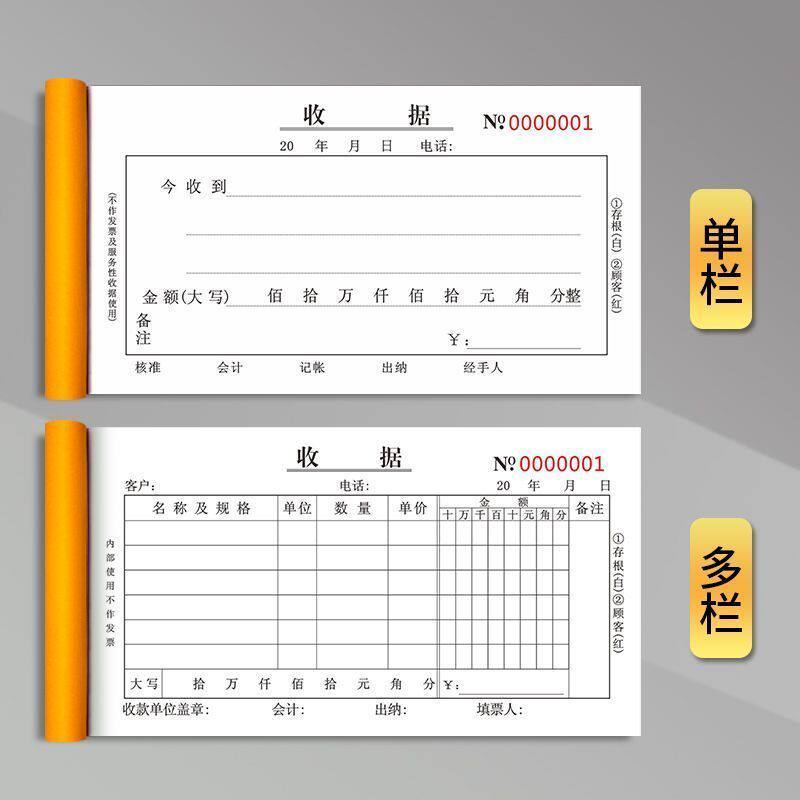 📚 收据二联三联收款收据单栏多栏收据本票据财务专用收款本无碳复写