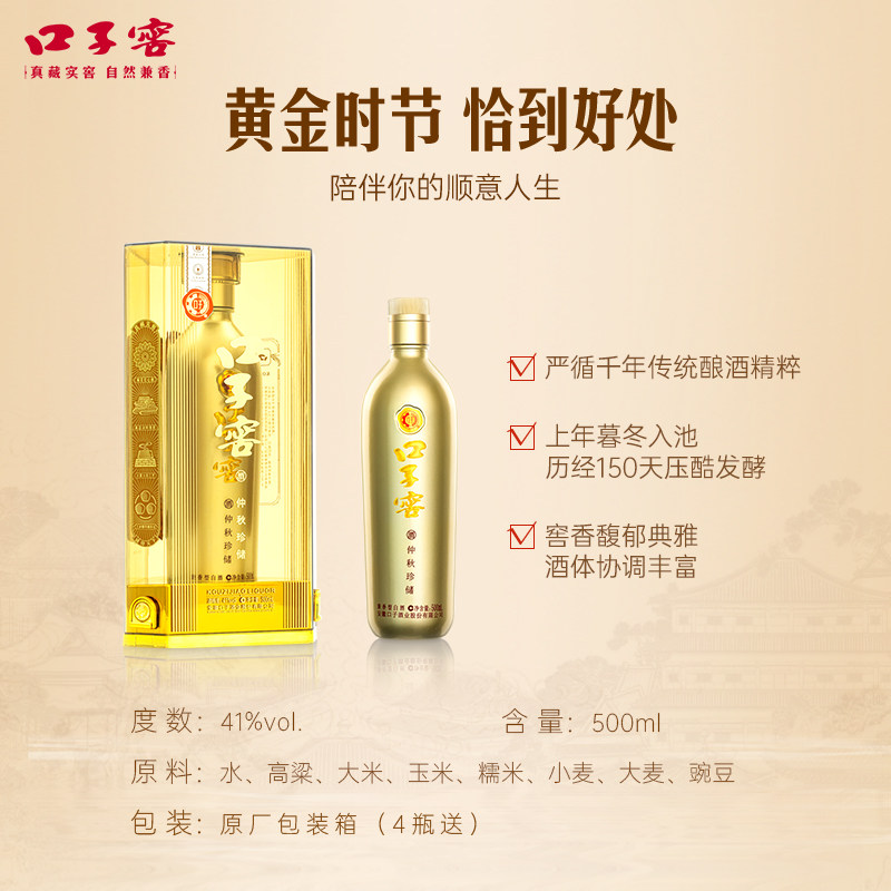 📚 口子窖仲秋珍储41度500mL 兼香型安徽白酒商务送礼 官方旗舰店