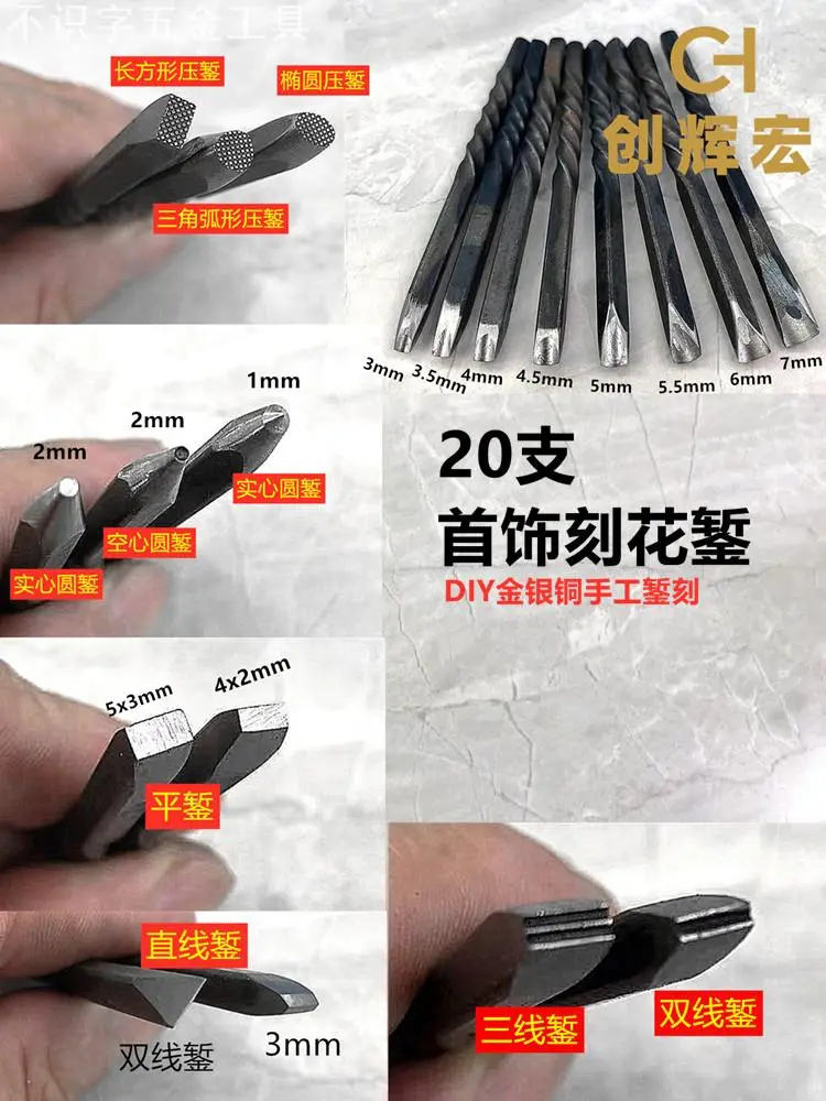 📚 首饰錾刻刀錾子套装金银铜手工制作花錾雕花扭花錾刻入门打金工具